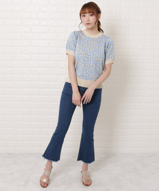 小花柄ボリューム袖プルオーバー