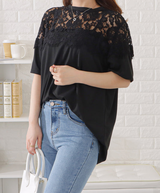 レース切替半袖Tシャツ