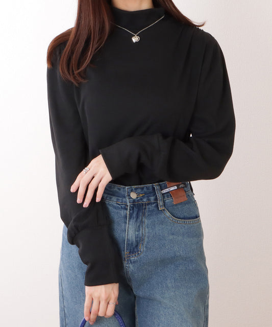 ロング リブ ハイネック 長袖 ギャザー プルオーバー