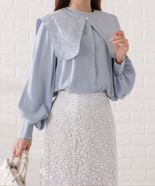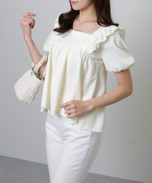 2WAY ギャザーネック クロス フリル キャンディ袖 ブラウス