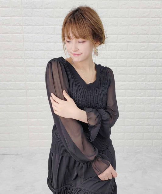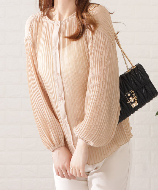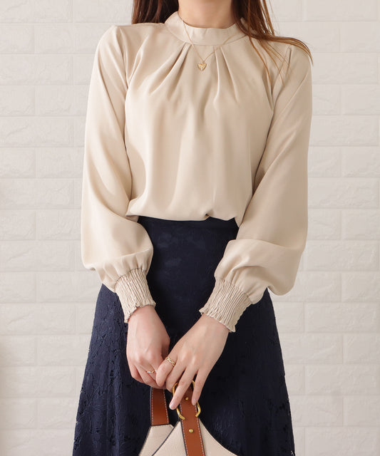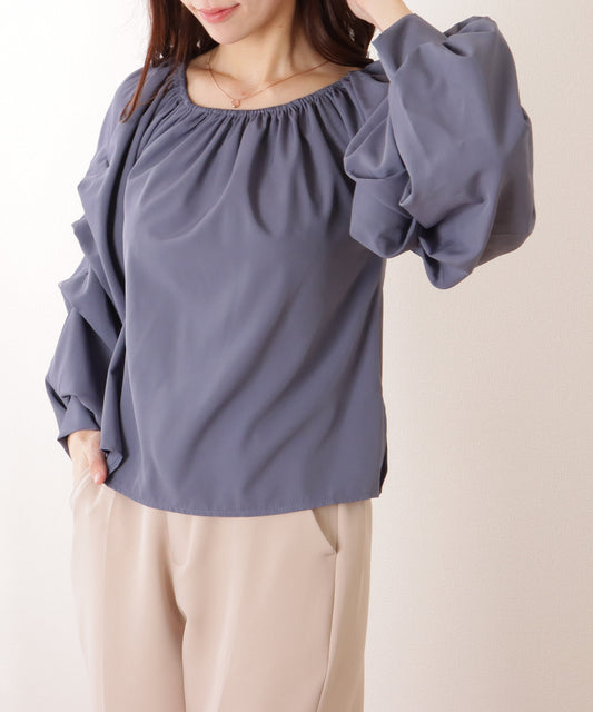 2WAY ギャザー ラウンドネック シフォン ボリューム袖 プルオーバー