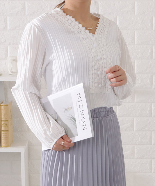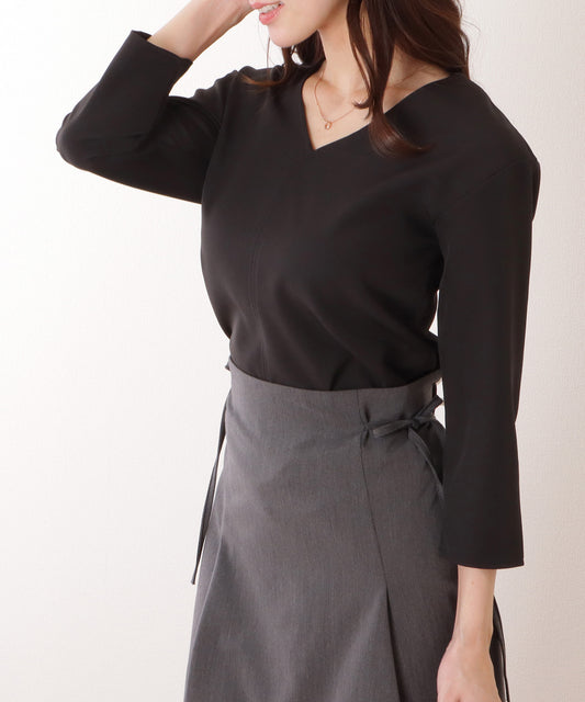Vネック センターライン 長袖 ボリューム袖 プルオーバー