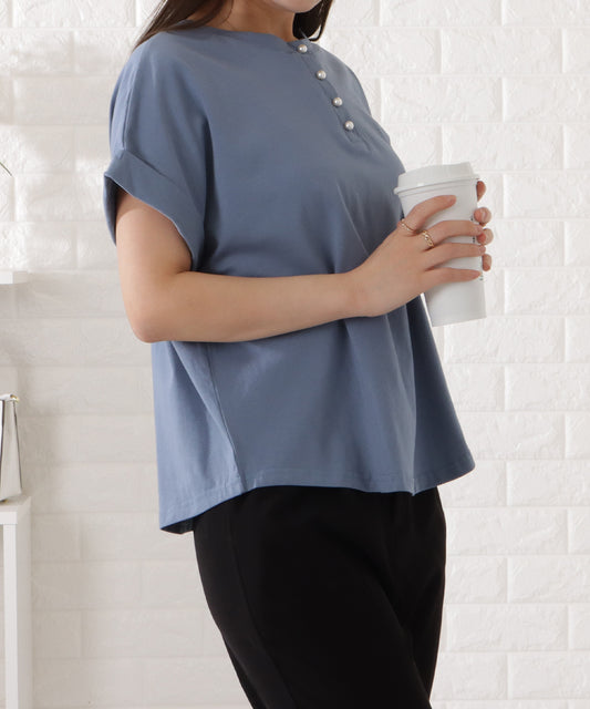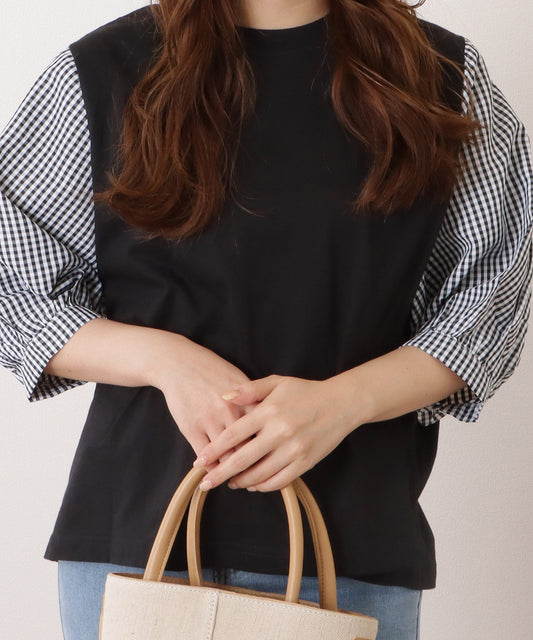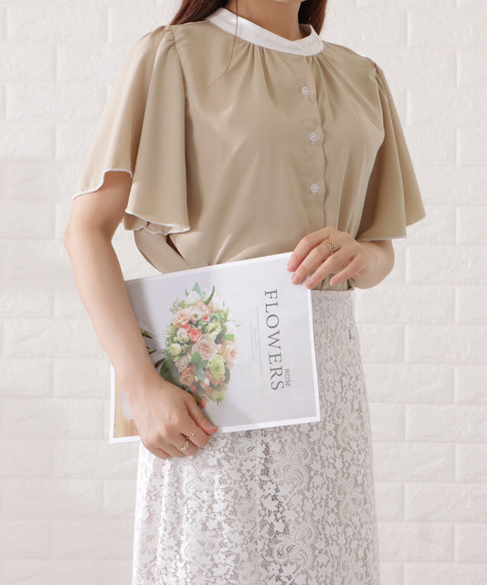 2WAYバイカラープチハイネック半袖シフォンブラウス