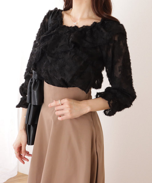 2WAY スクエアネック シフォン ティアード コンパクト ブラウス オフショル