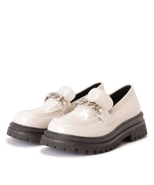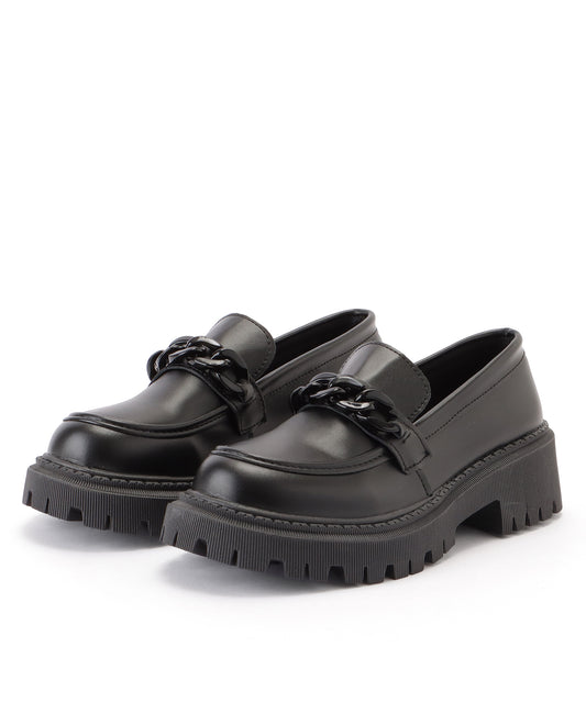 チェーンベルト付き 厚底 ラウンド ローファー