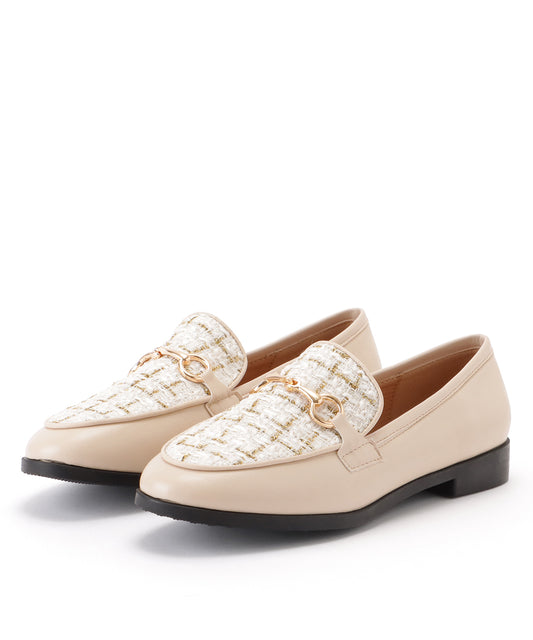 ツイード × レザー バックル付き ローヒール ローファー
