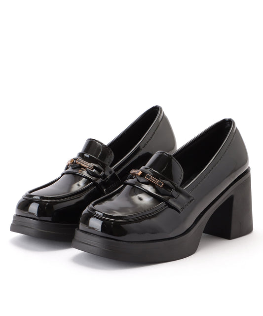 エナメル調 チェーン付き ハイヒール 厚底 ローファー