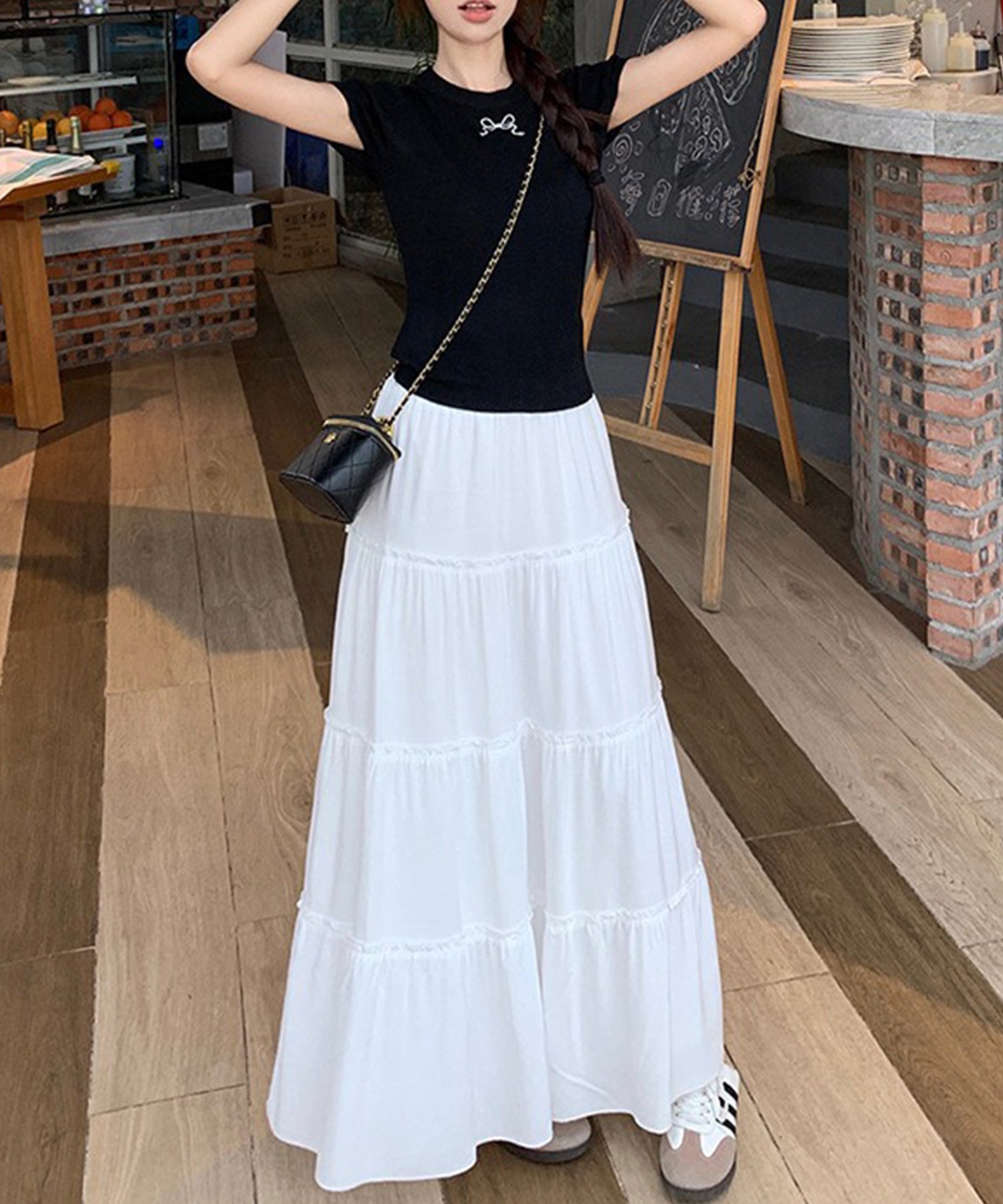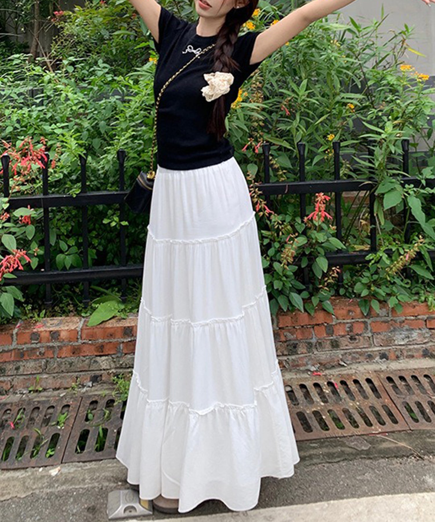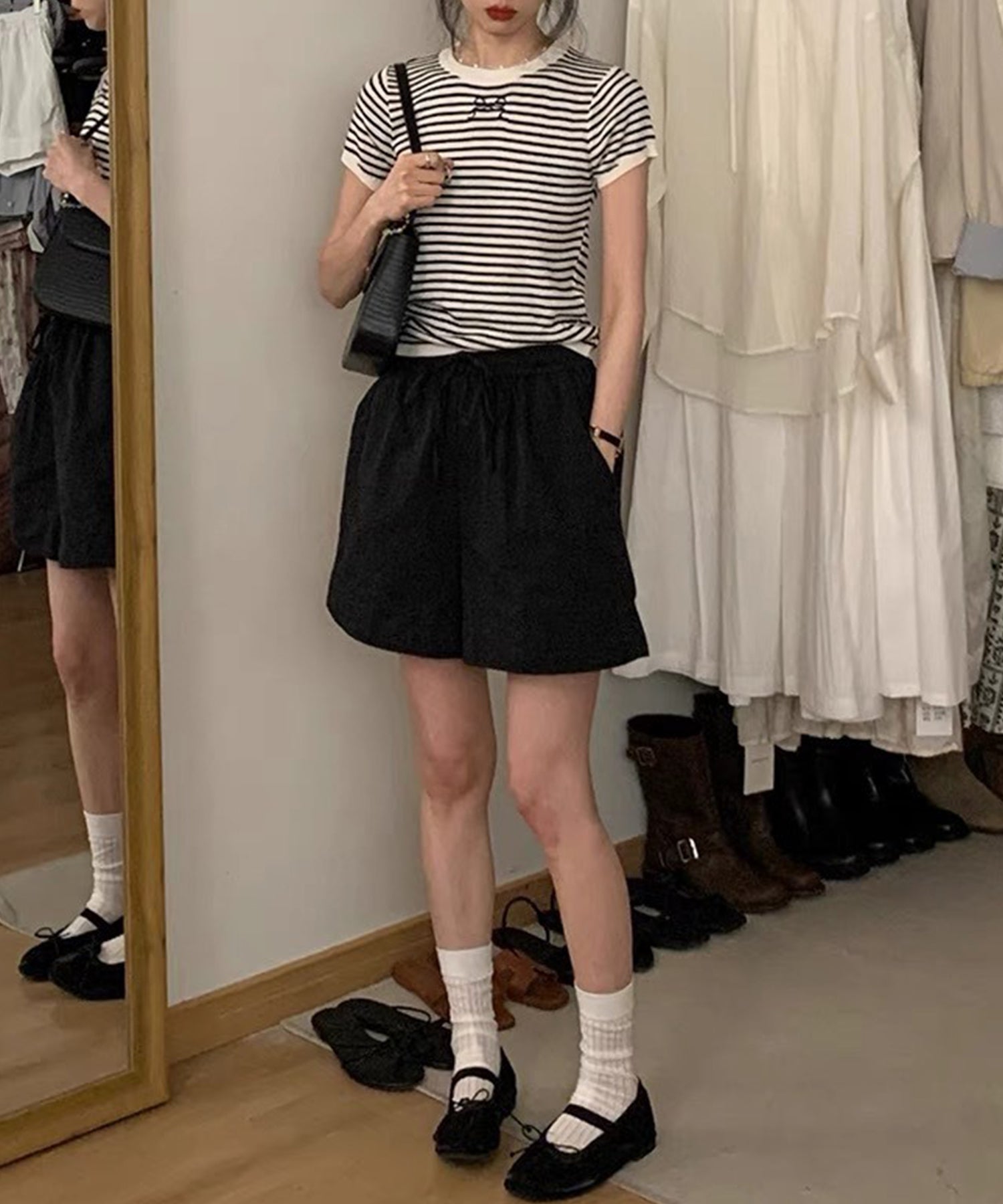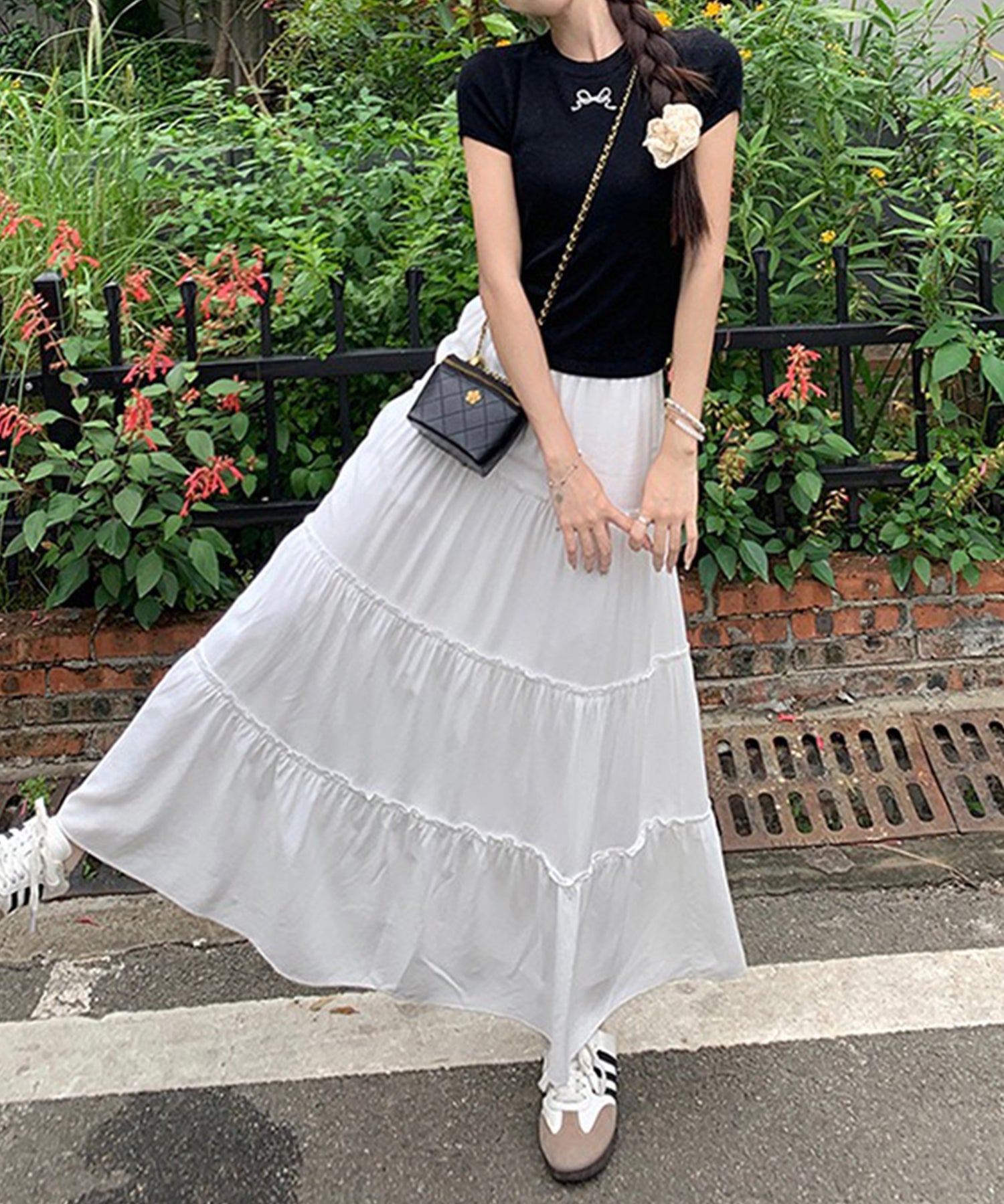 ショートパンツでヘルシーに着こなすのはもちろん、ロングティアードスカートを合わせたロマンティックなスタイルも◎。
