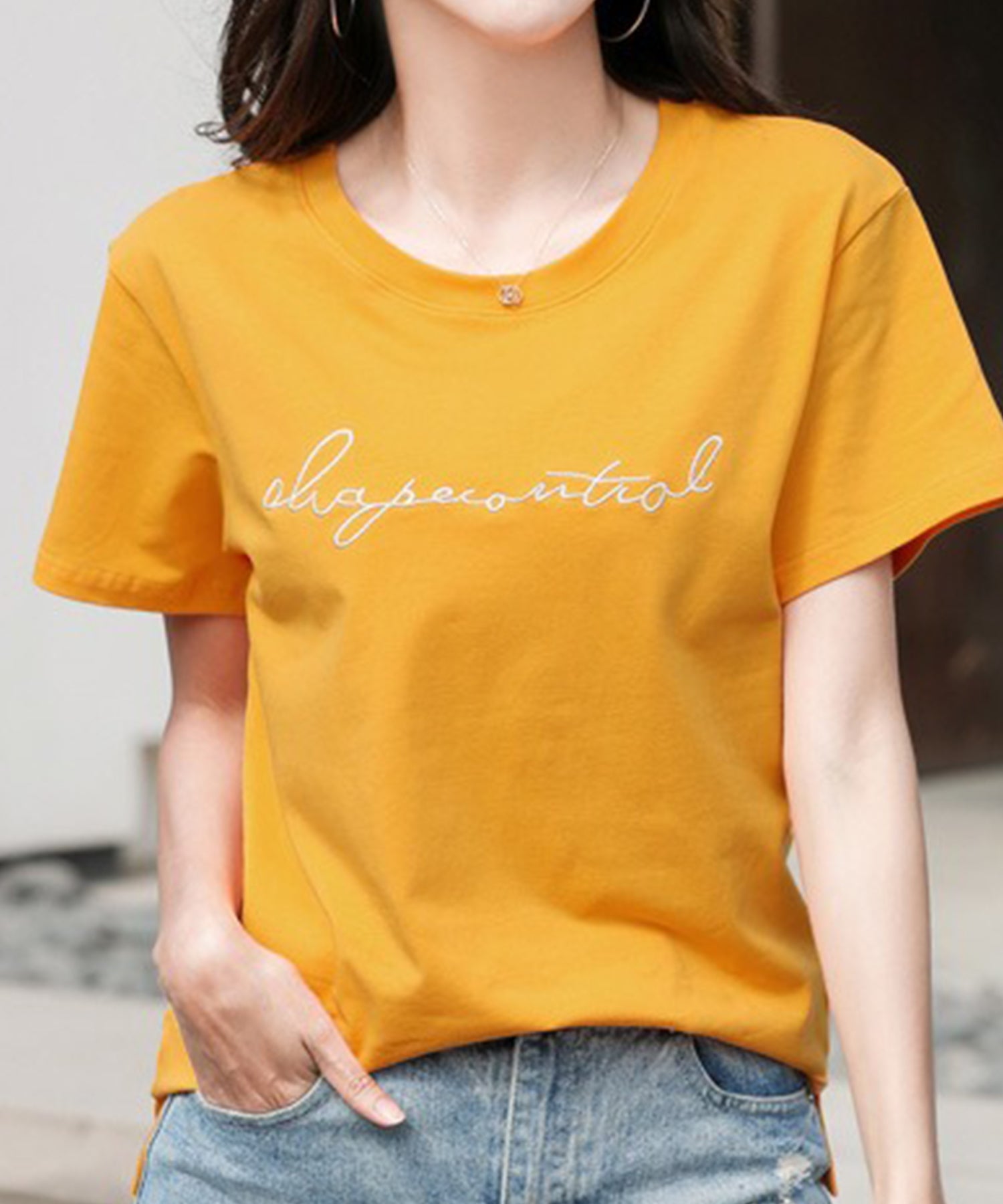 配色ロゴ刺繍をアクセントにした半袖Tシャツ。