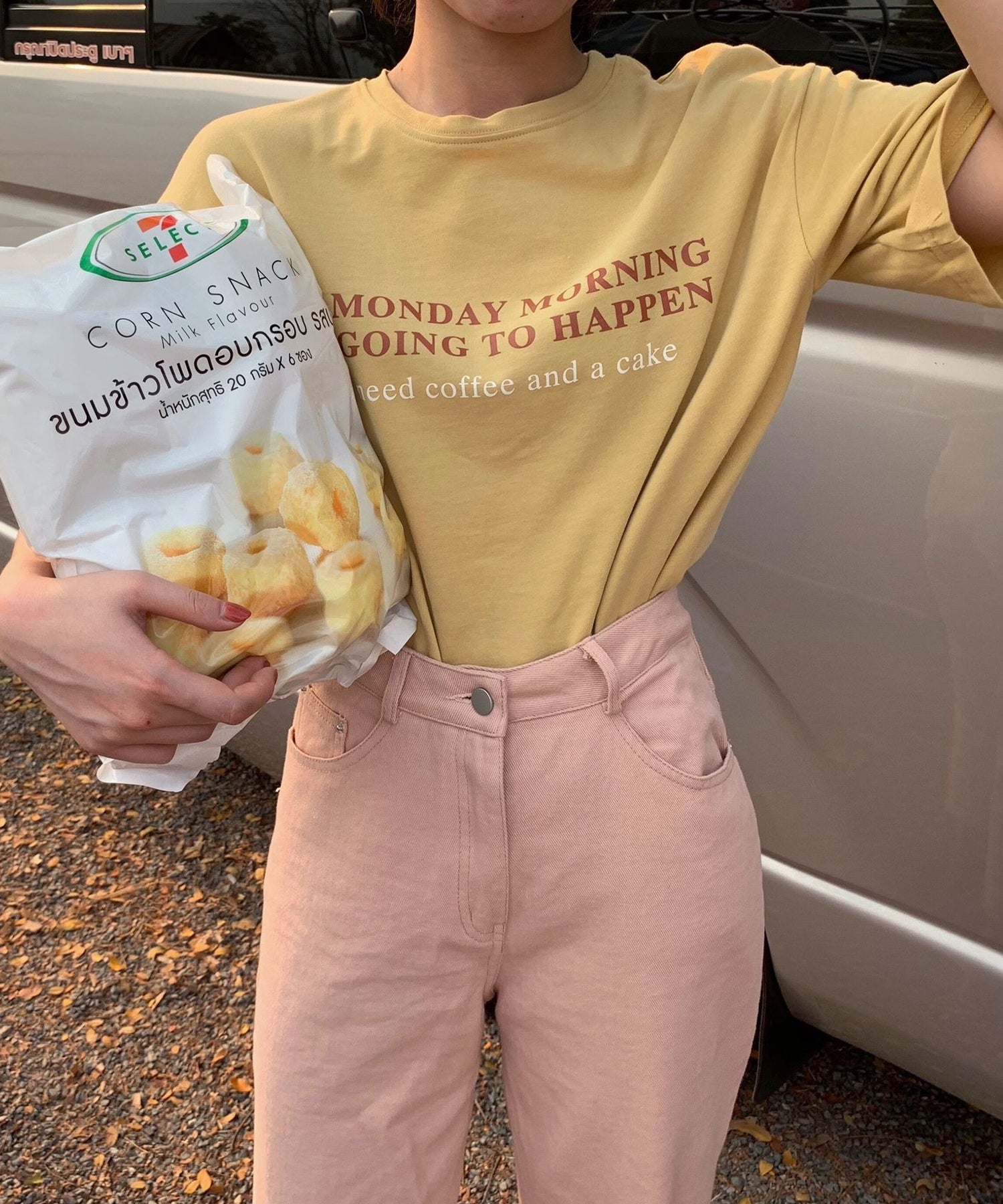 配色が可愛いオーバーサイズの半袖ロゴTシャツ。