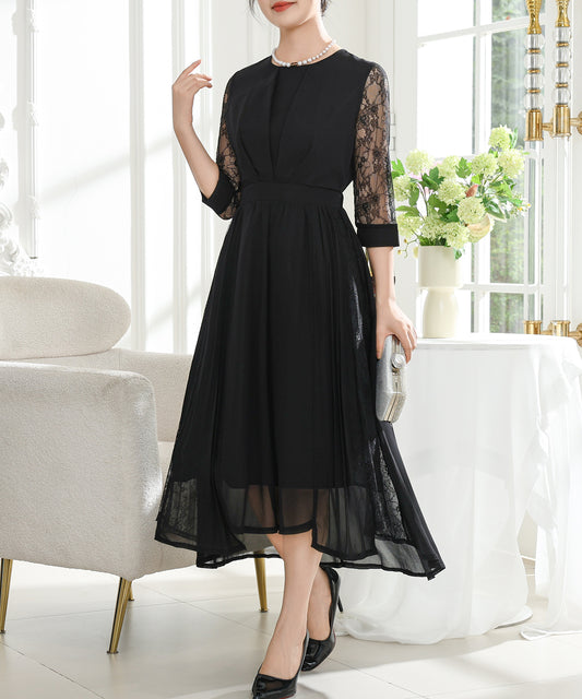 ビスチェ風 レース 切り替え 6分袖 ワンピース