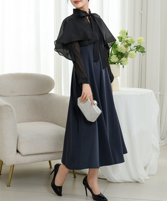 ベロア シアー フリルケープ付き ノースリーブ ドレス 3点セット
