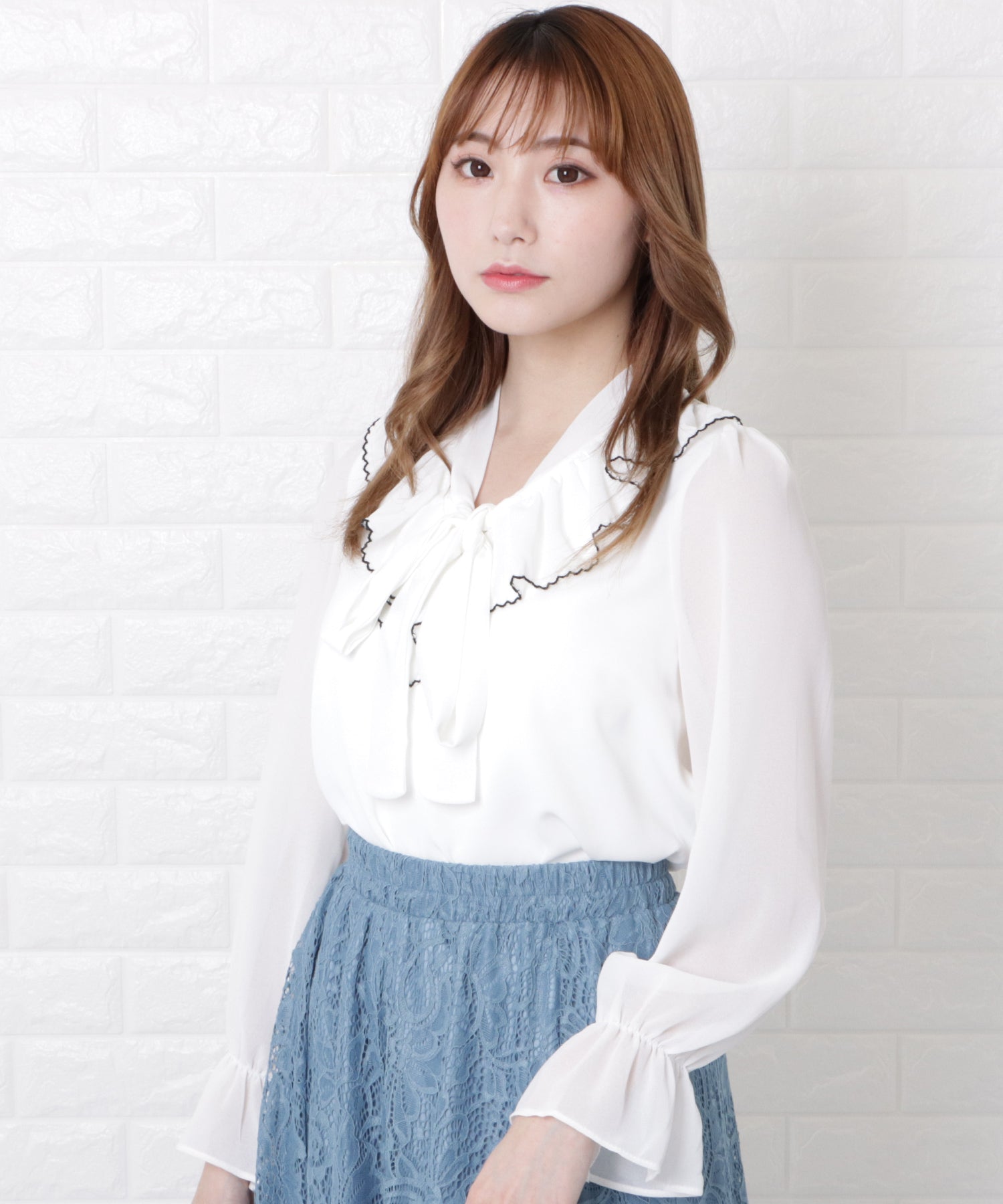 パイピングを施したラッフルデザインが目を惹くブラウス