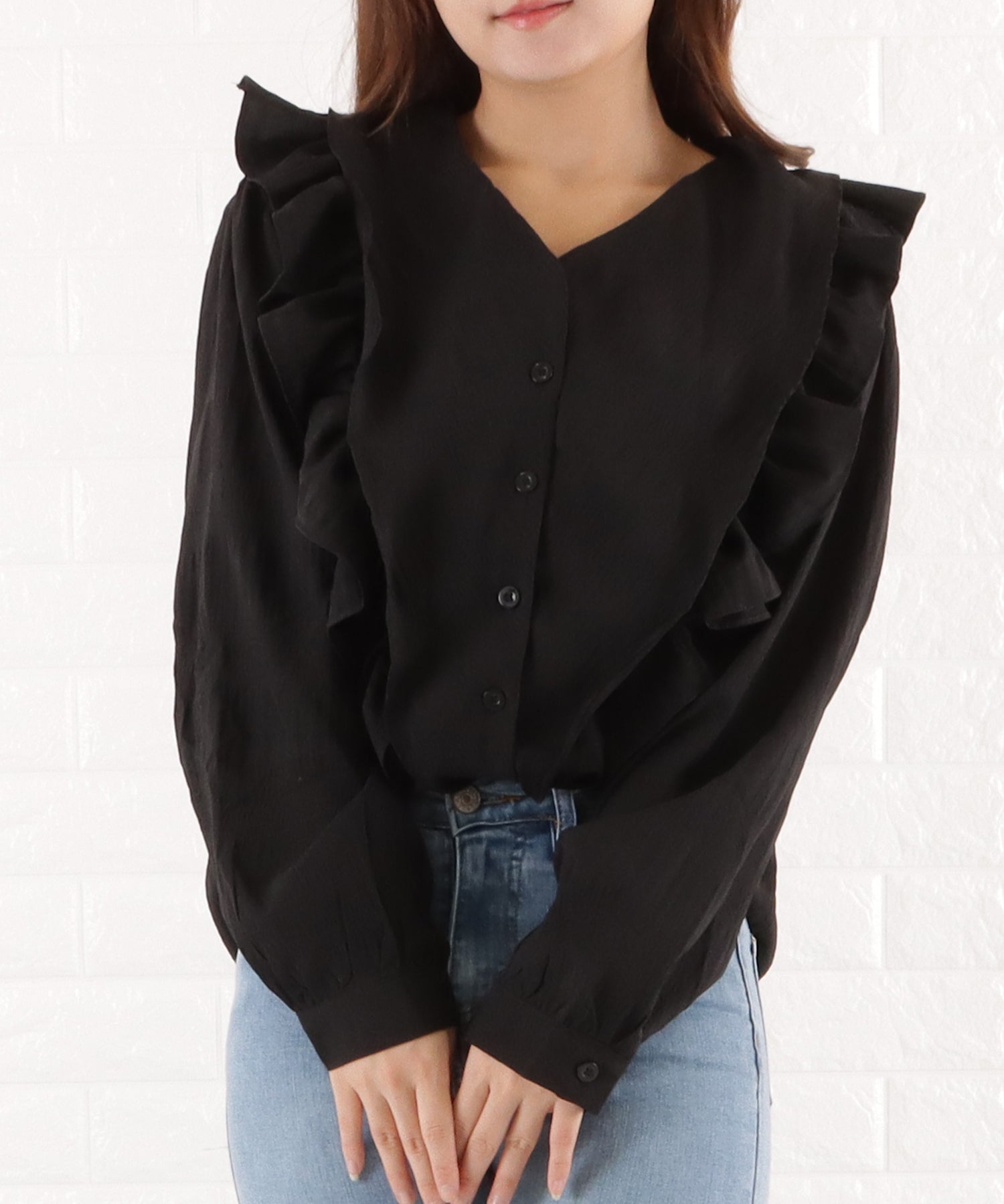 商品説明 | 大ぶりのフリルが華やかな印象を与えるブラウス。 ゆとりのある身頃にたっぷりのフリルでボリュームがあるように見えますが、とろみのある生地感なので、膨張して見えないのが良いところ◎ 大きく開いたVネックは抜け感を出し、顔周りをすっきり魅せます。 さらりとした肌触りで、ロングシーズン着られるのも嬉しポイントです。 フェミニンにまとめるのはもちろん、デニムやスラックスなどパンツとの相性も抜群。 幅広いスタイリングが楽しめます。 |