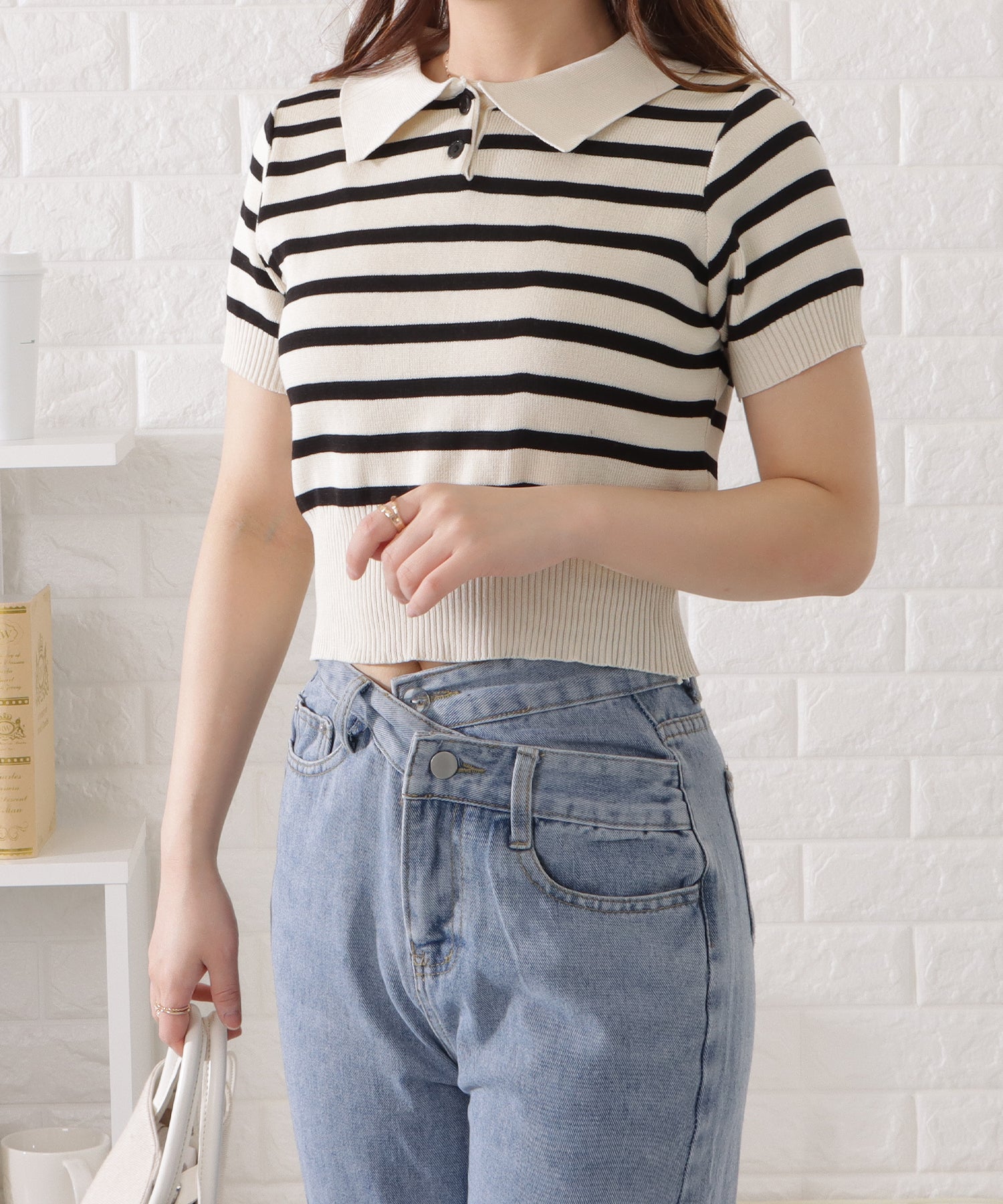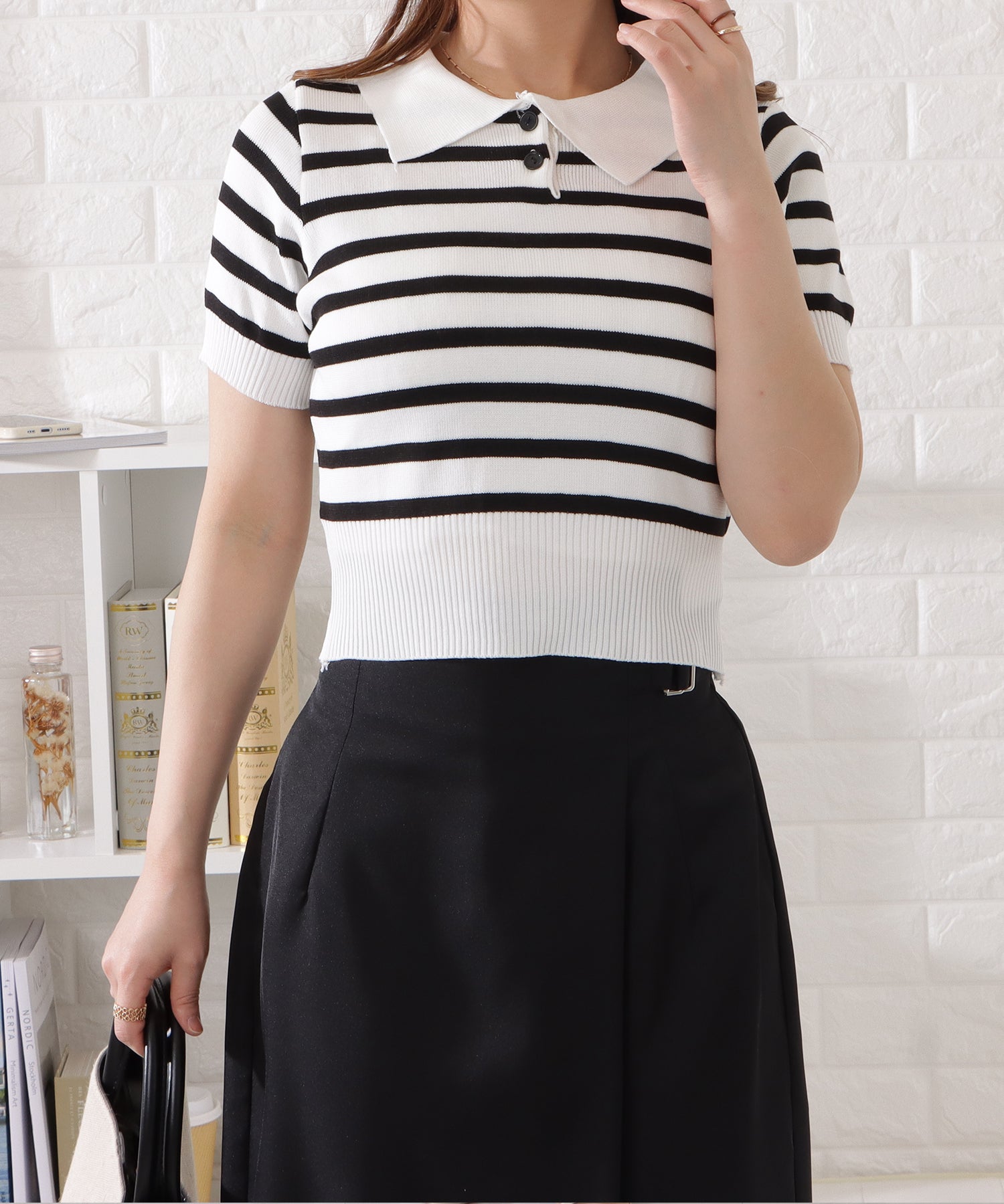 襟付きでカジュアルな印象に仕上げたニットトップス