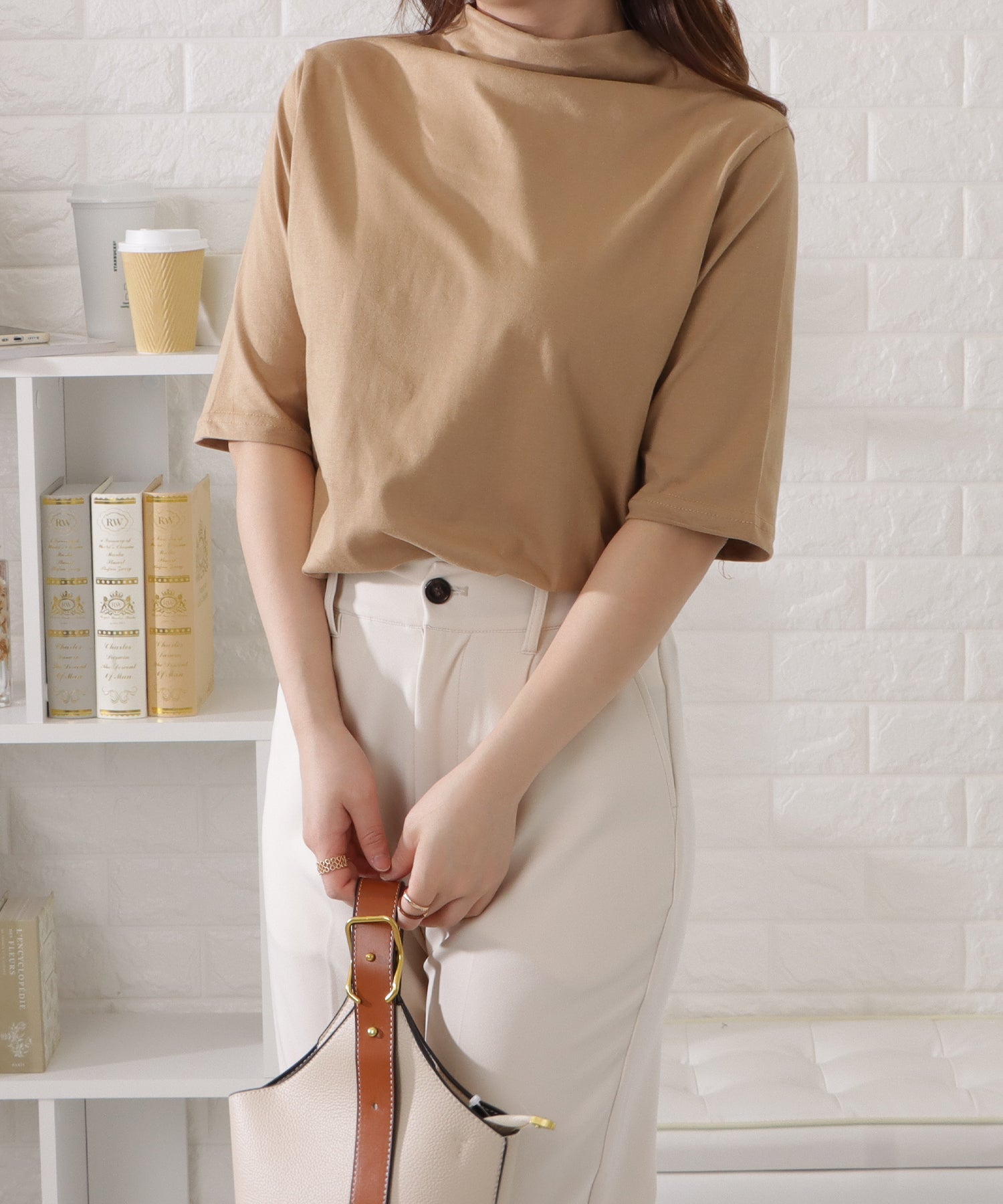 プチハイネックを採用した、トレンド感のある1枚となっています。