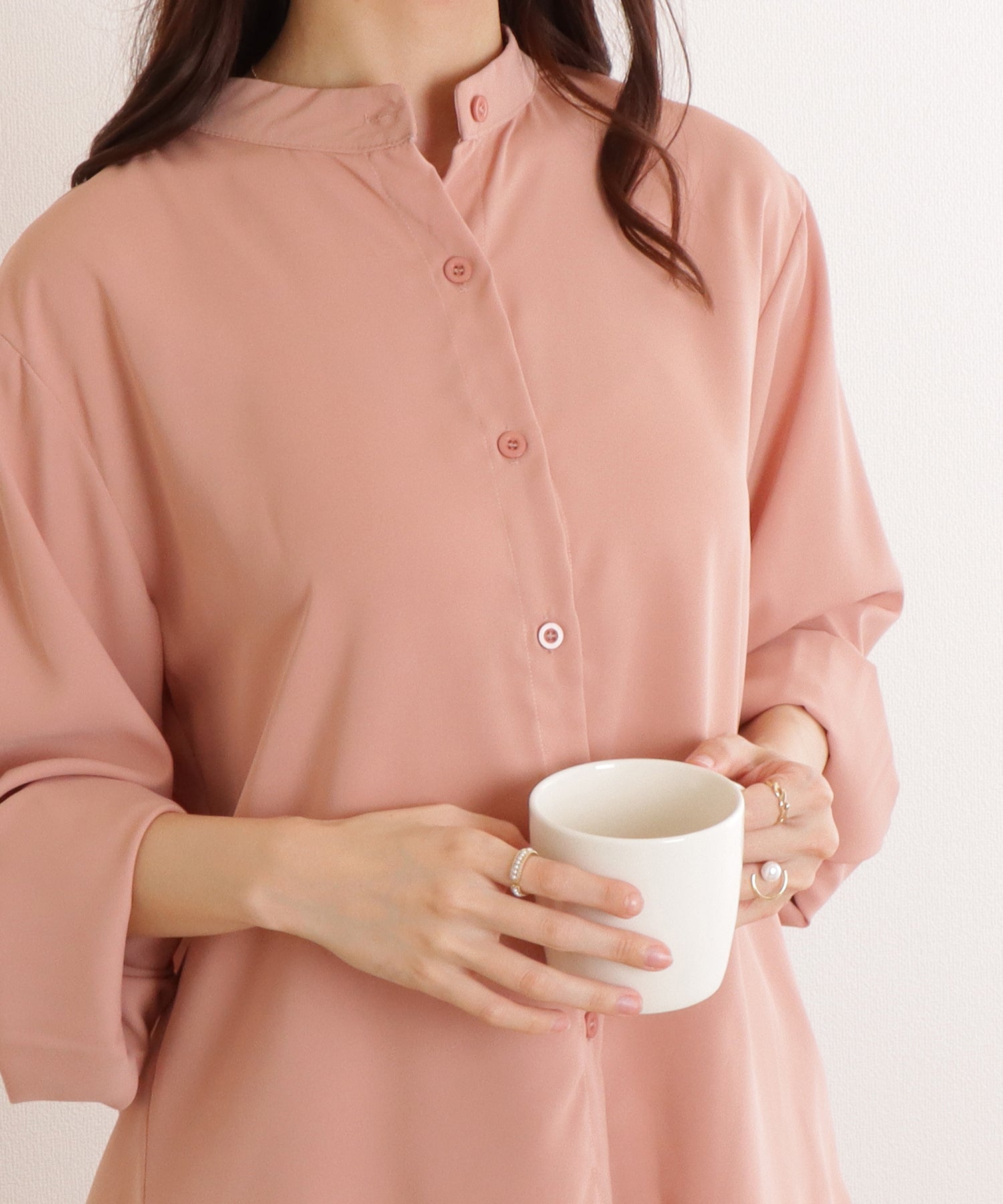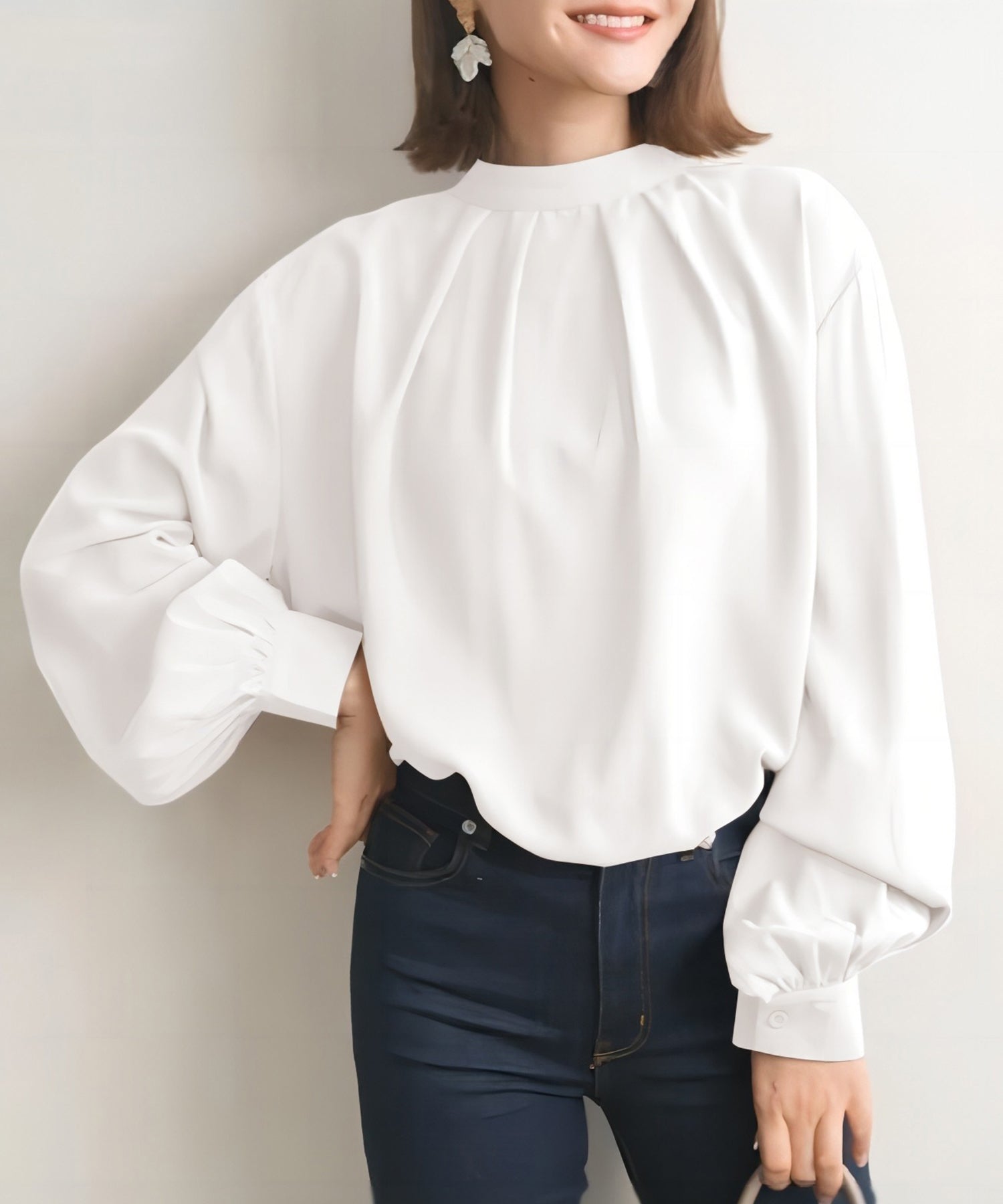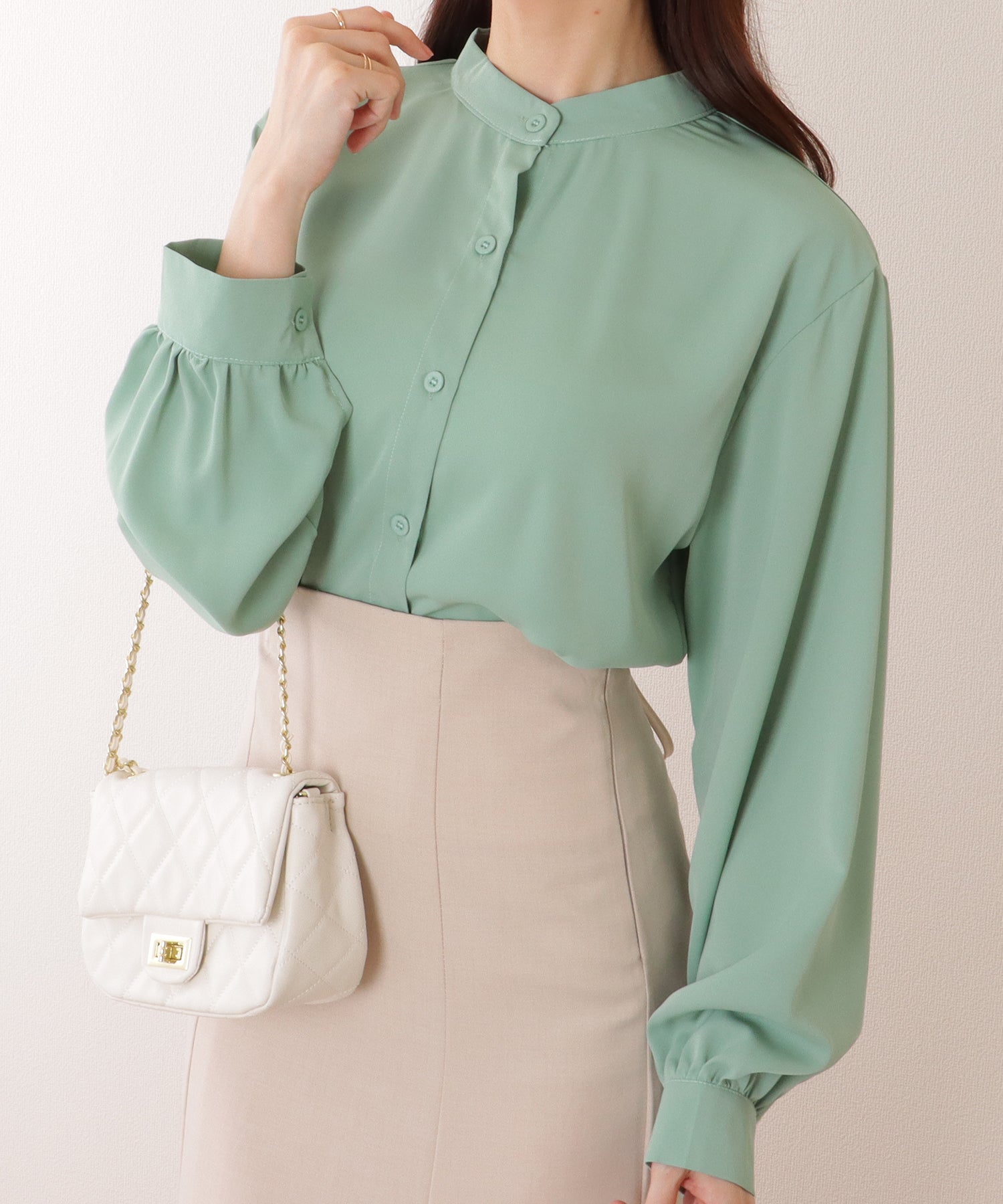 2WAY バンドカラー バルーンスリーブ 長袖 ブラウス