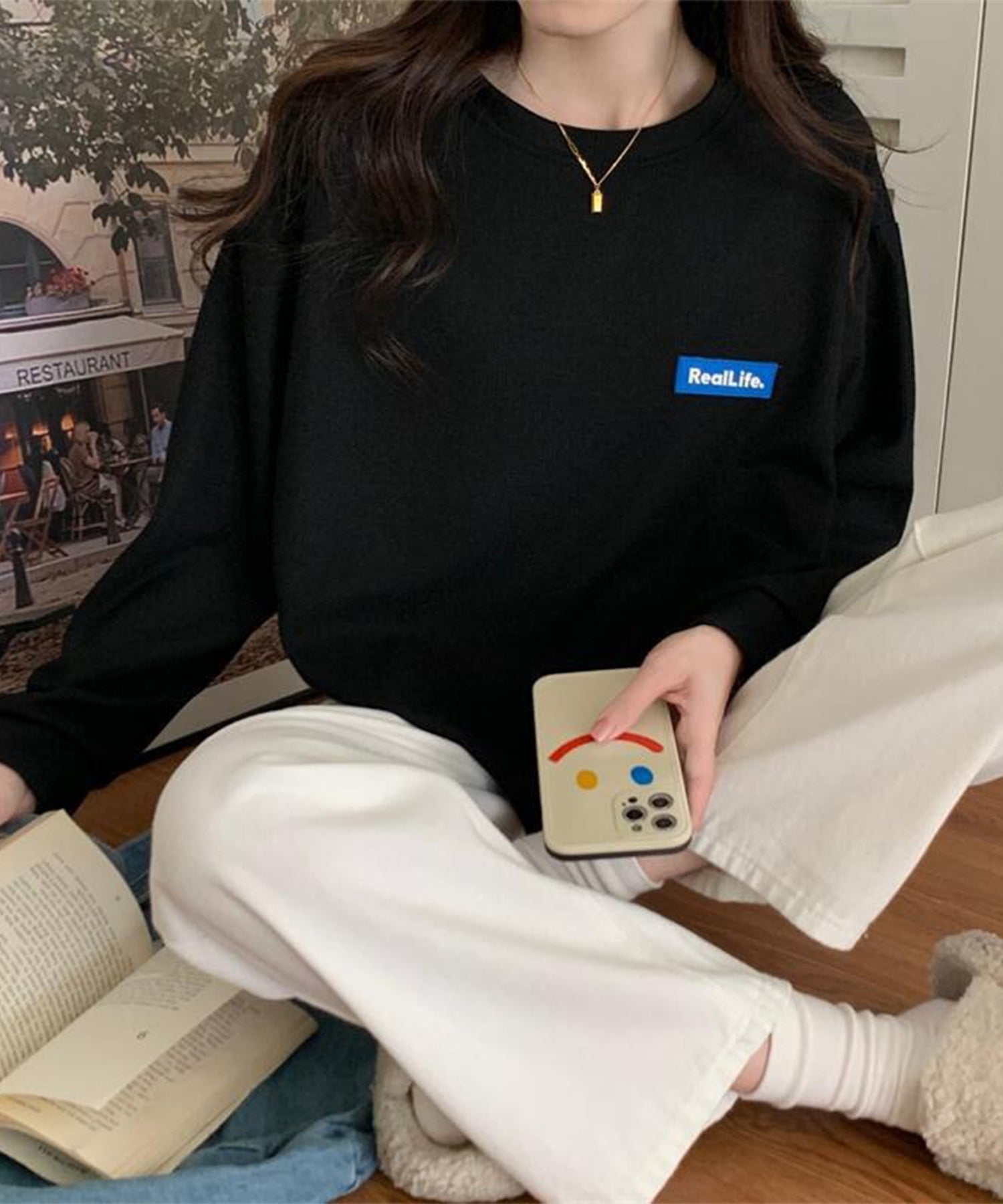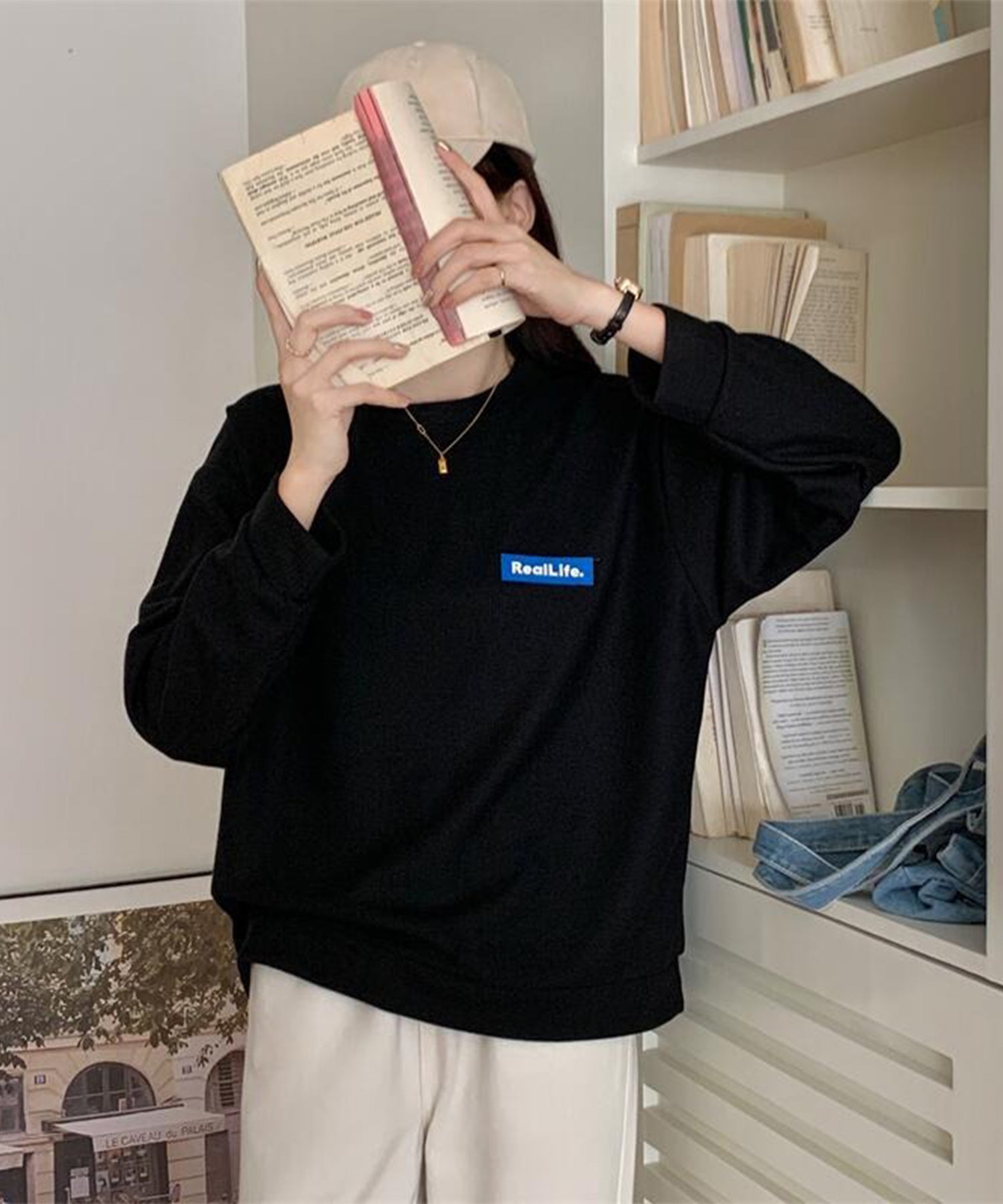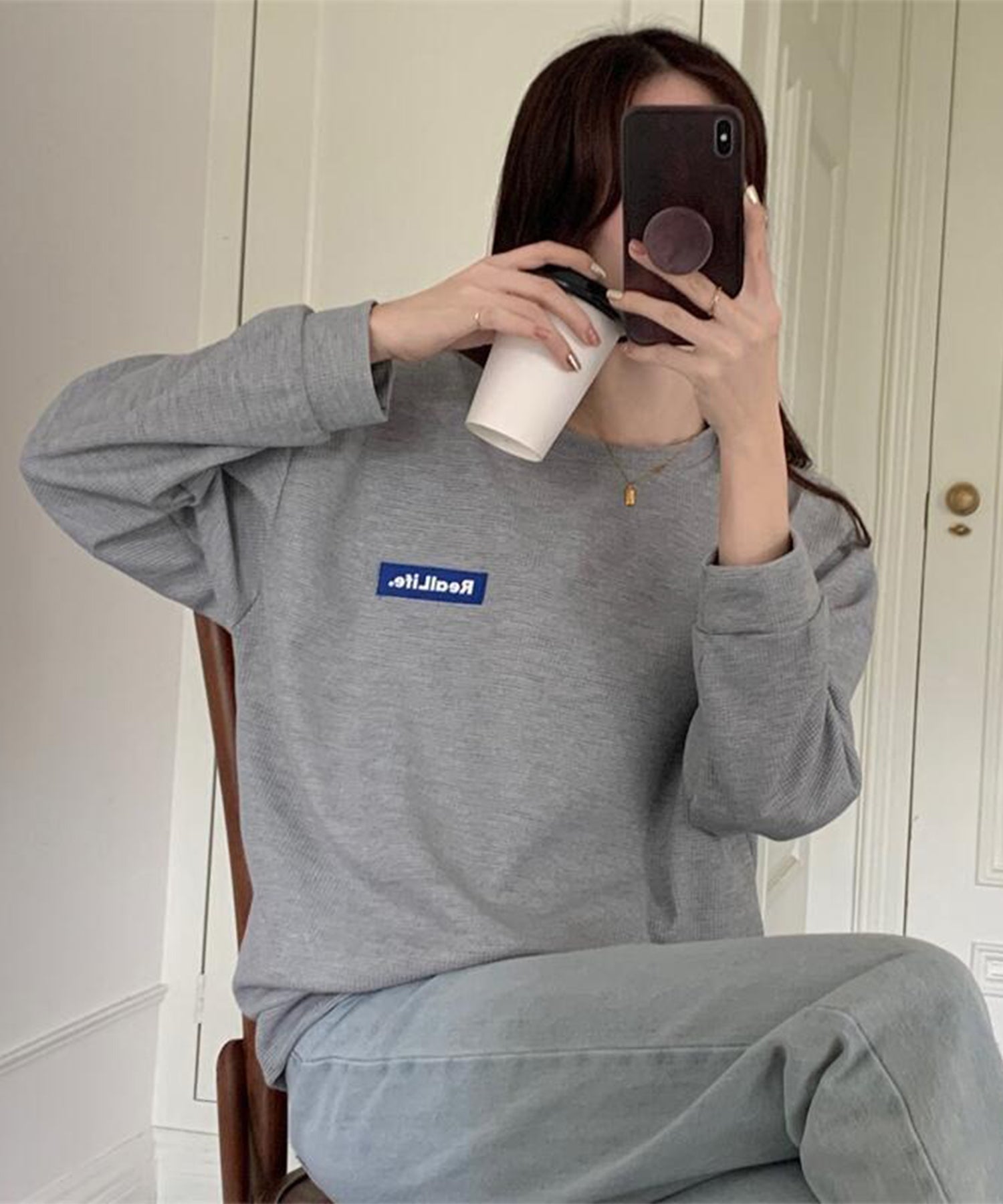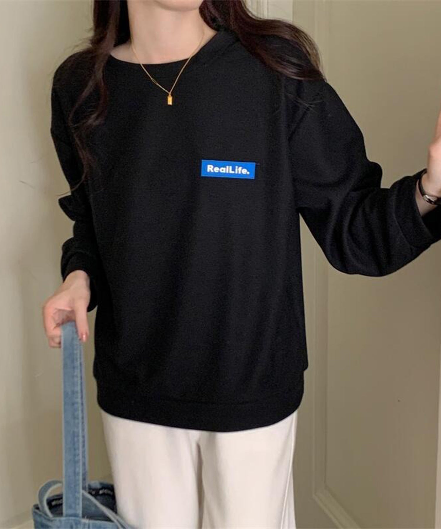 体のラインを拾わないオーバーサイズシルエットは、ドロップショルダーと相まって抜け感のある表情に。