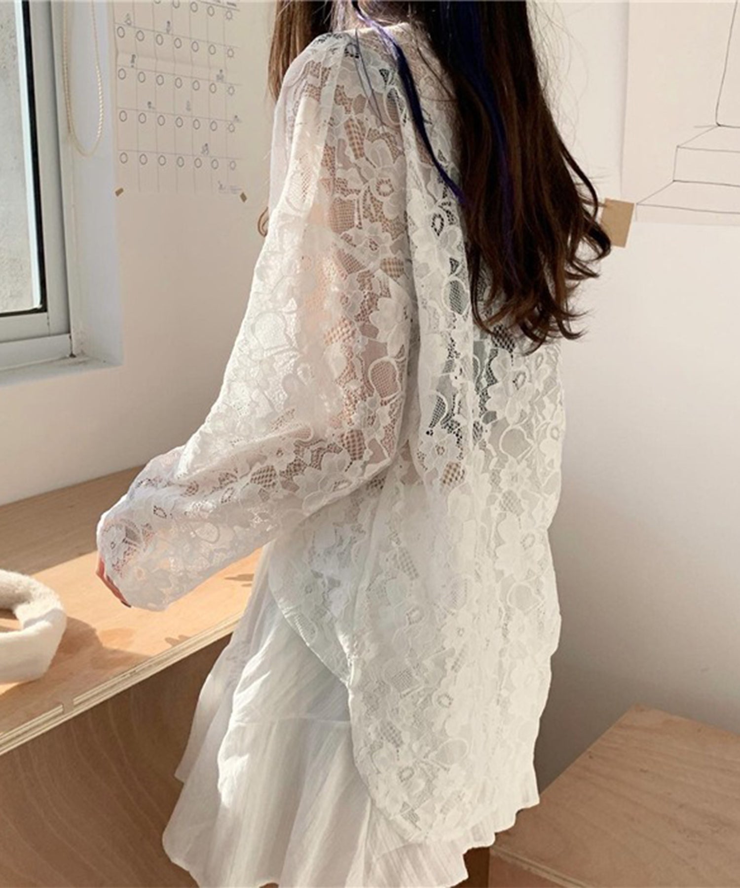 ほんのりと透ける肌が抜け感をプラスし、ヒップまで隠れる着丈が体型を程良くカバーしてくれます。