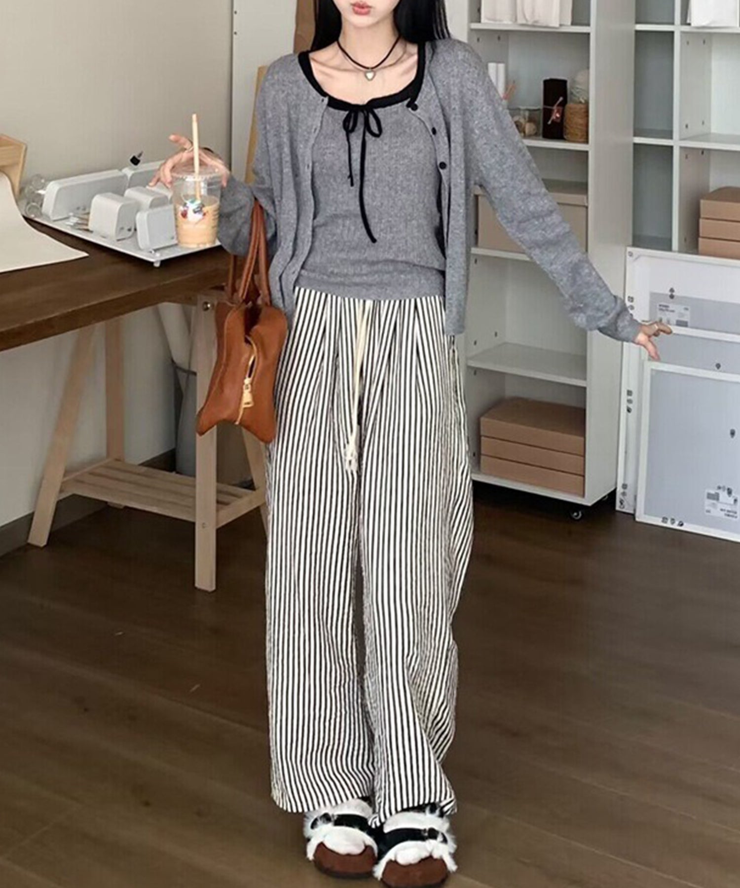 着るだけでおしゃれ見えするキャミソールとカーディガンのアンサンブル。