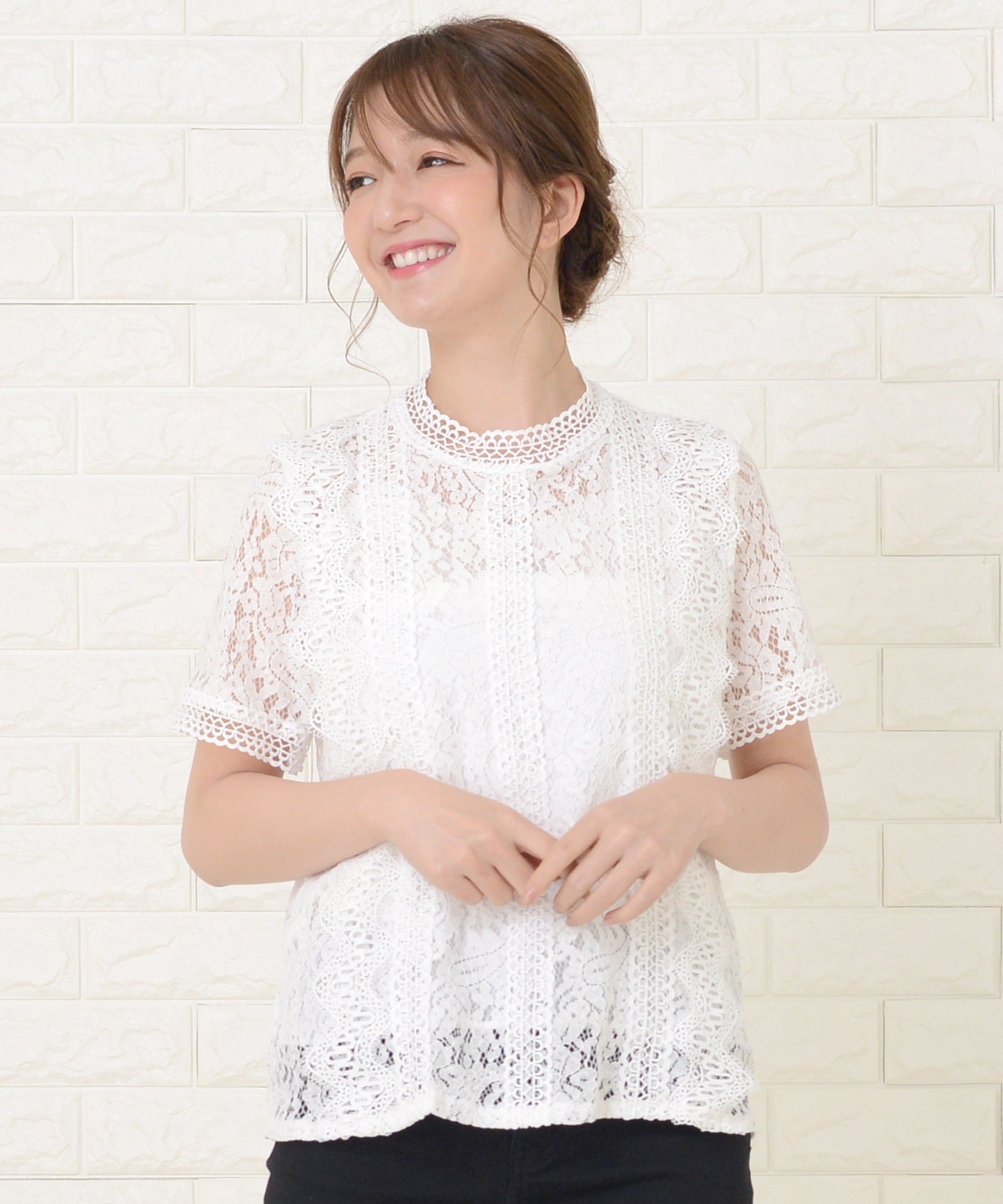 商品説明 | 立体感ある上品なレーストップスです。 総レース仕上げのトップスには、身頃にも飾りレースも加えてあり高見えするデザイン♪ レースならではの透け感が楽しめ、さらに胸元部分まで裏地があるため気になる部分の肌見えも安心です。 首の後ろにはボタンがあるので着脱もラクラク◎ キレイめコーデはもちろん、デニムを合わせてカジュアルダウンで楽しめる優秀トップスです。 |