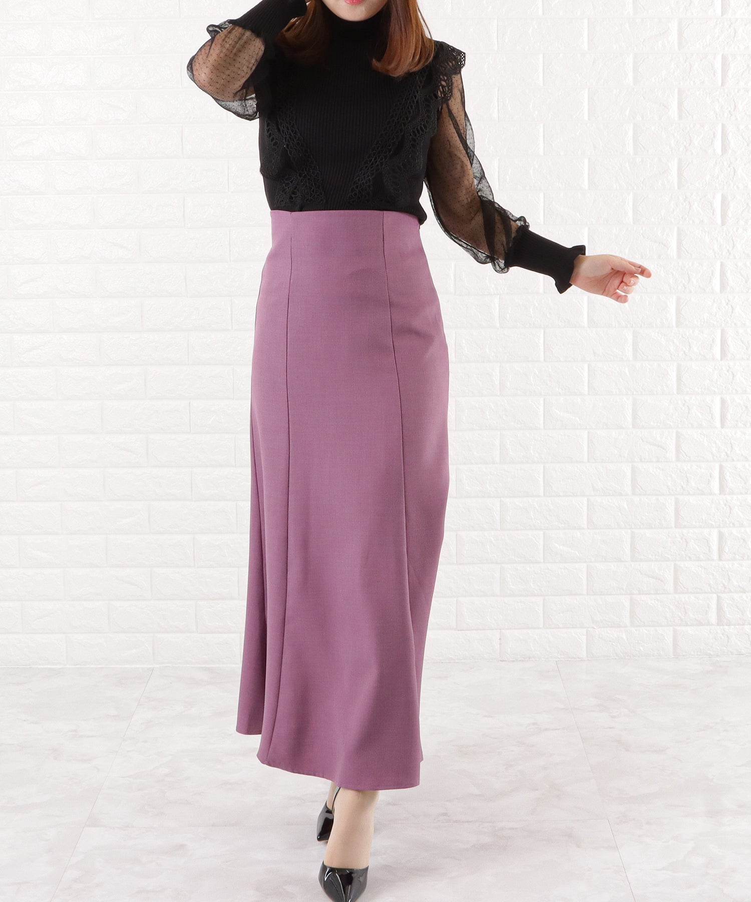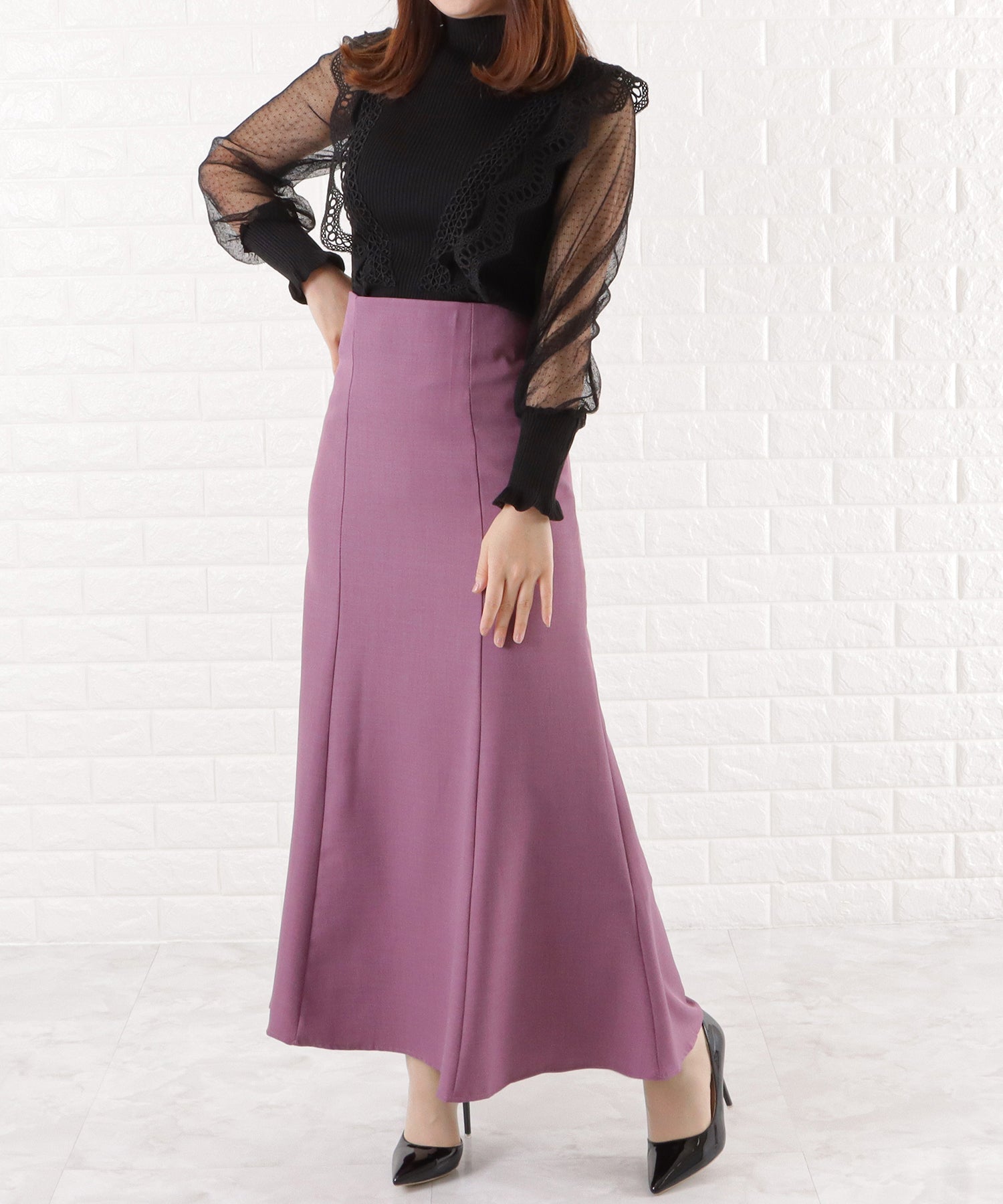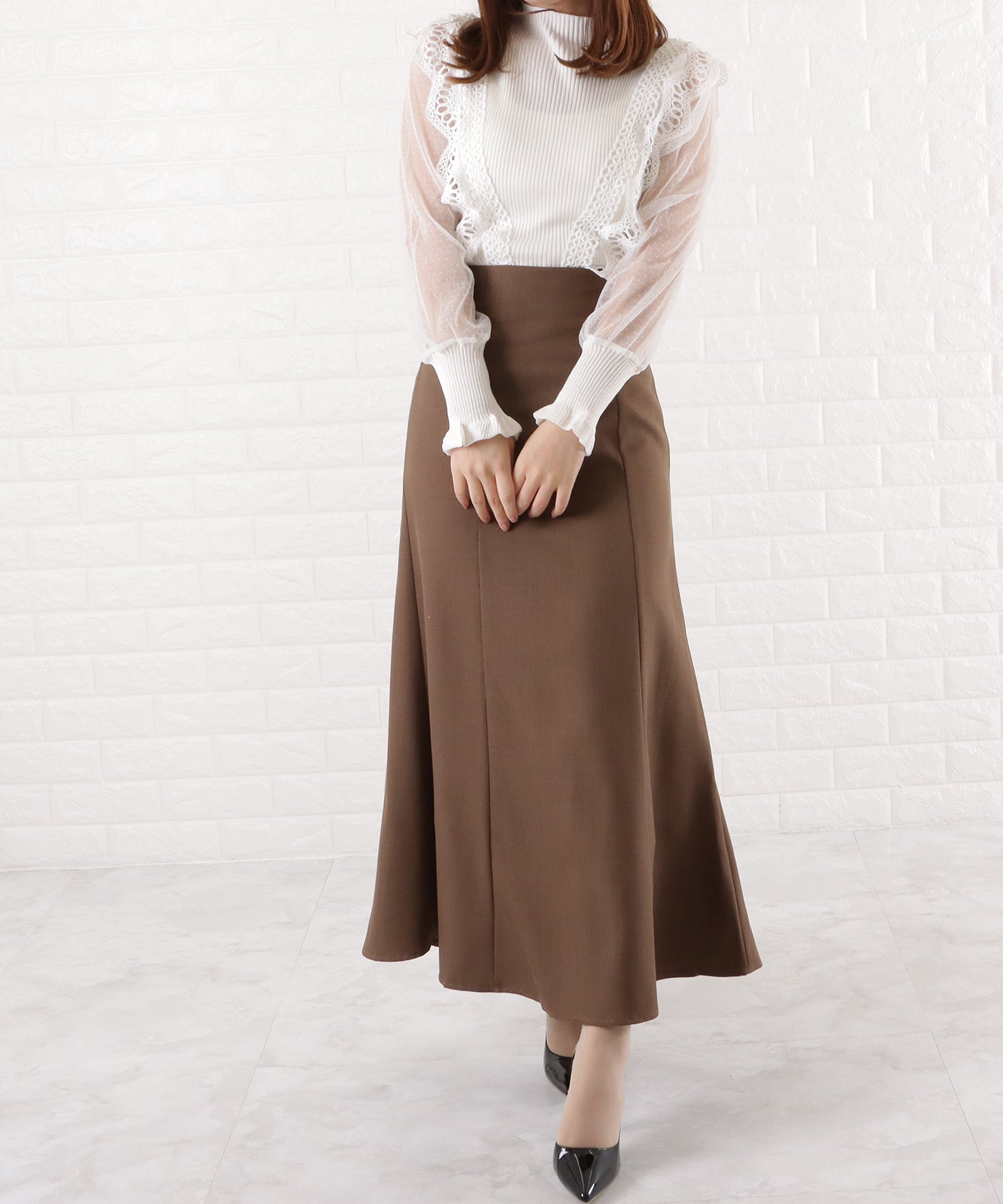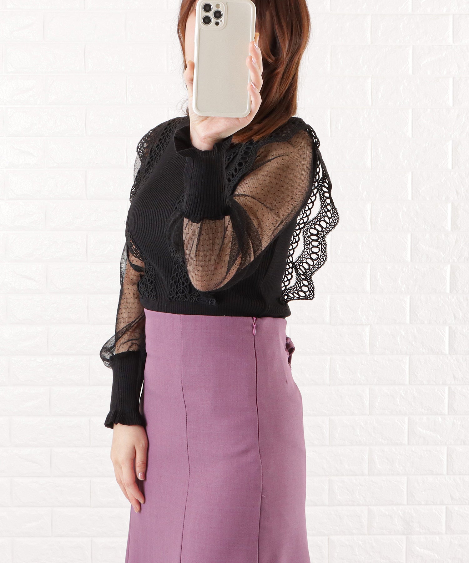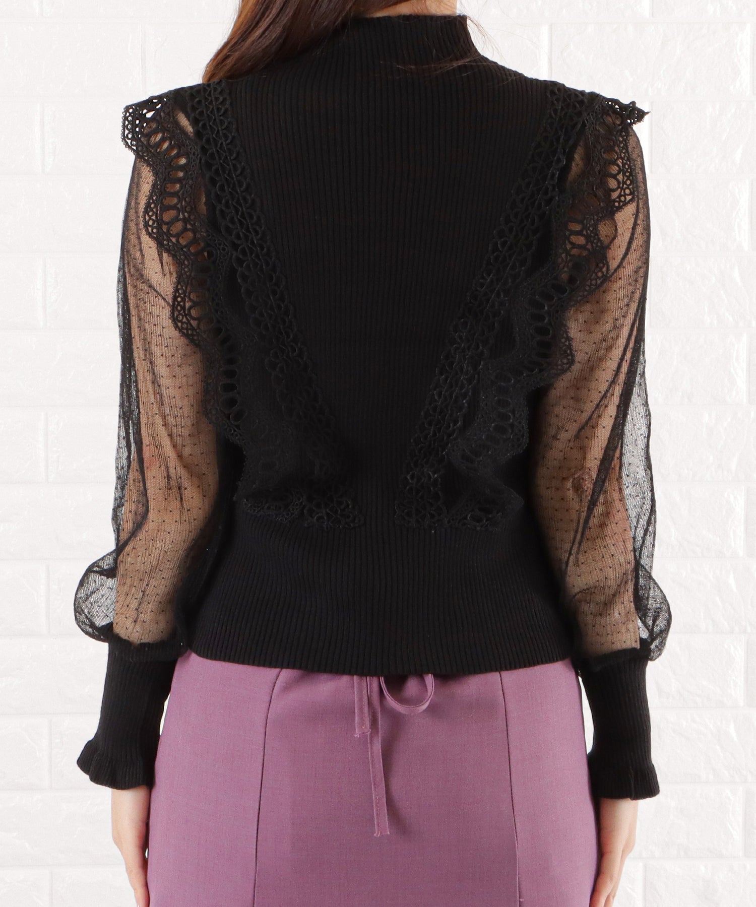Vレース付きハーフハイネック チュール長袖ニット?レースデザイン