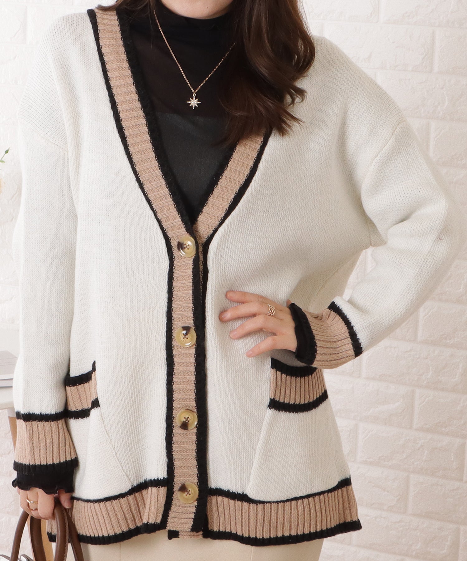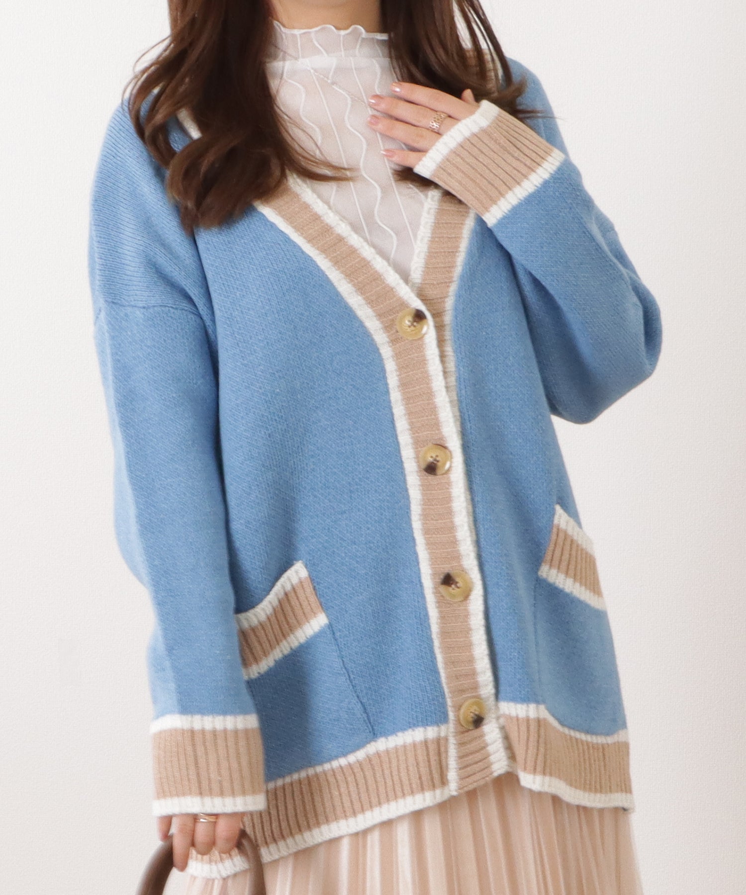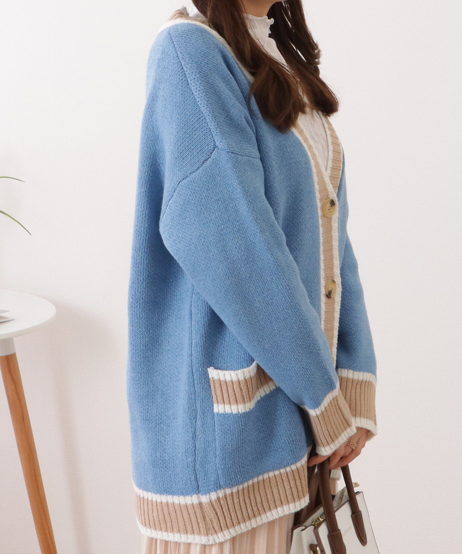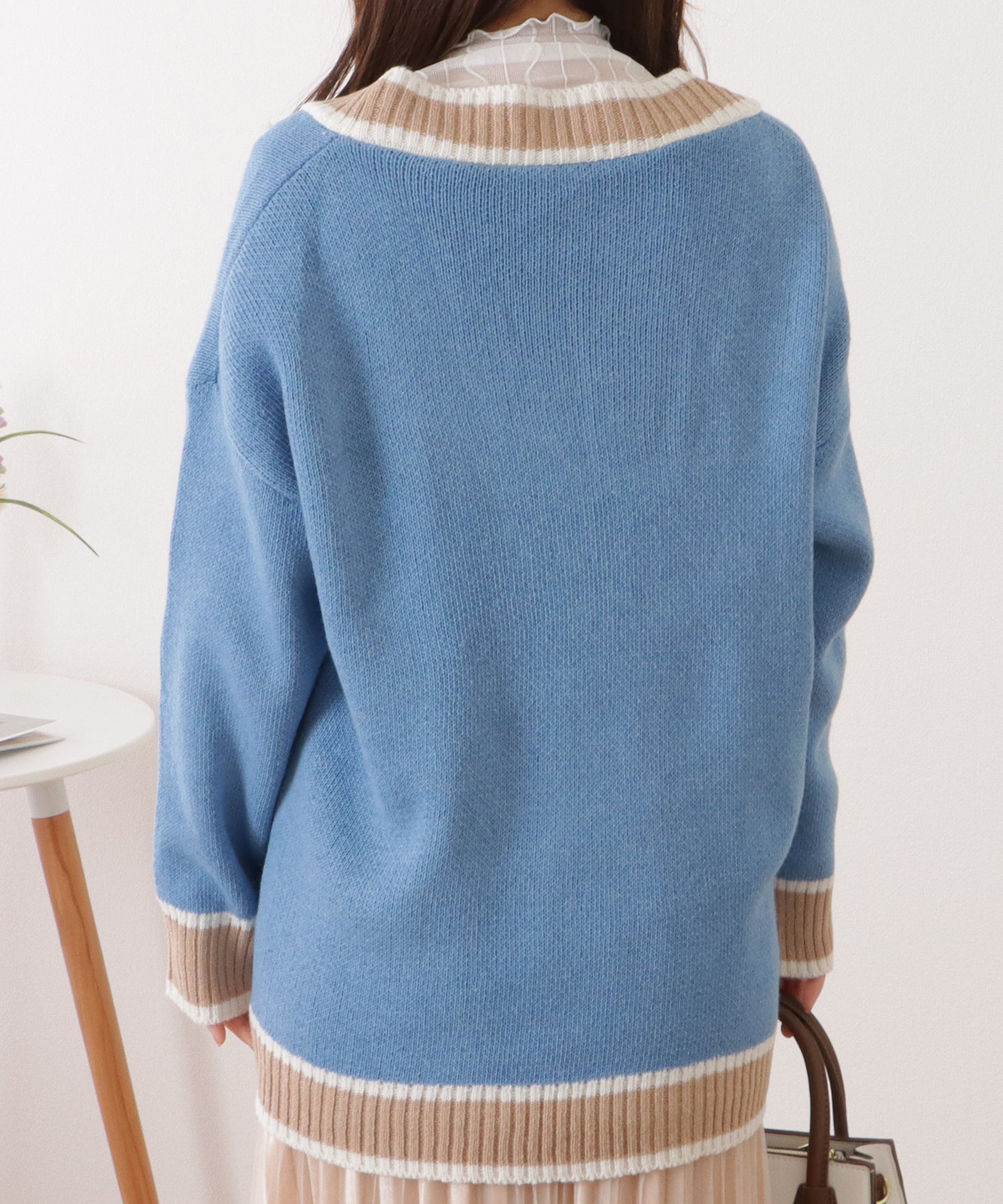 配色ラインゆるニットVネックカーディガン