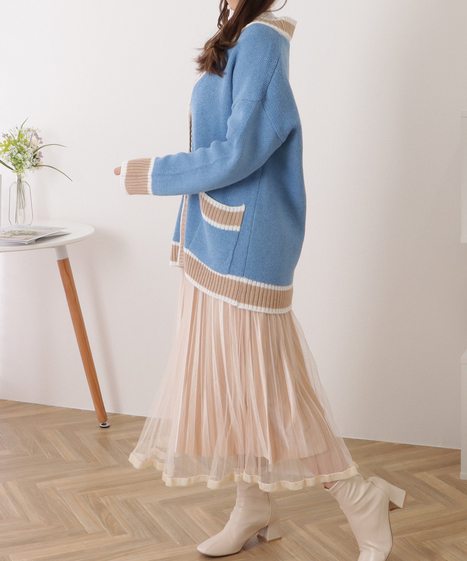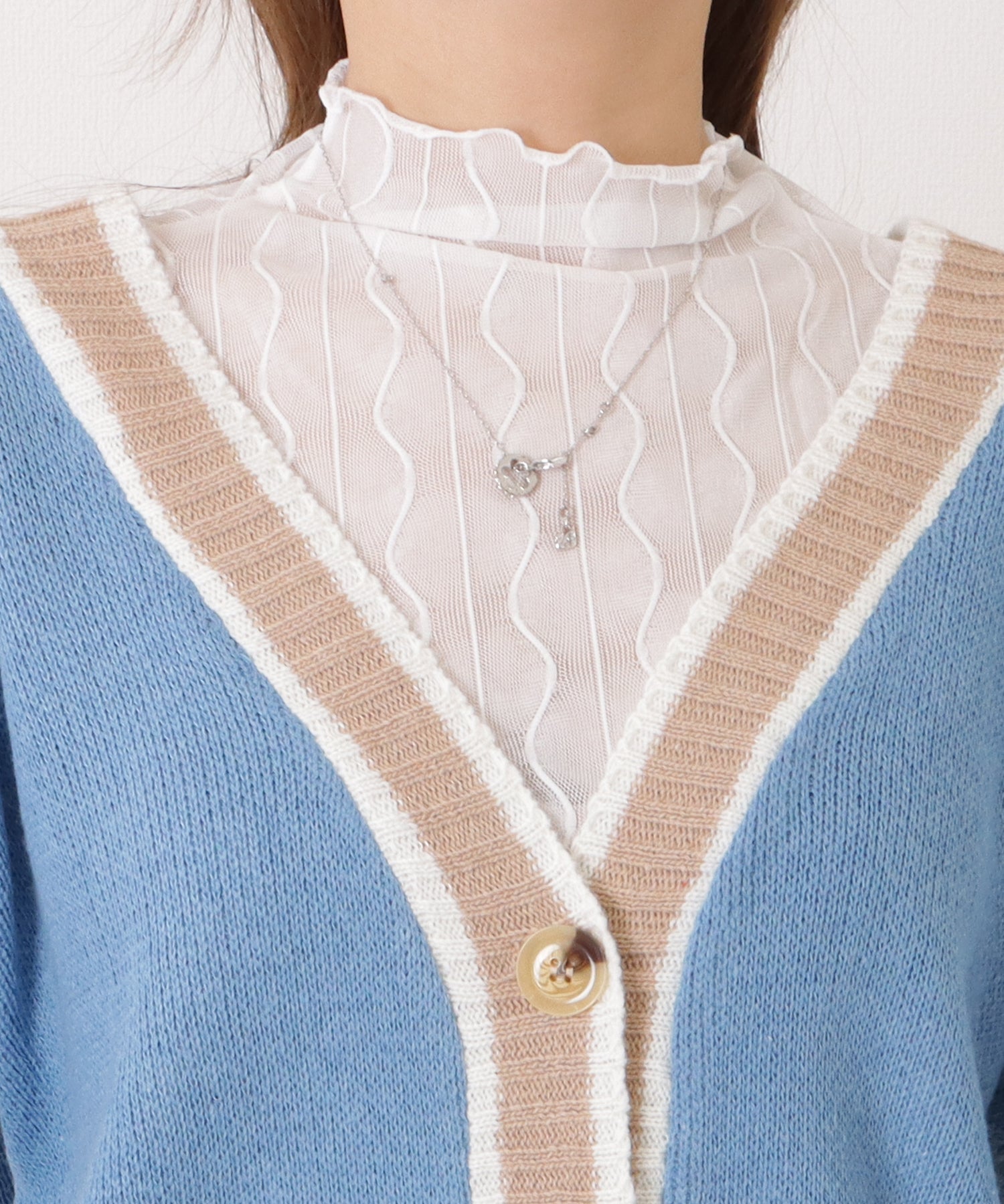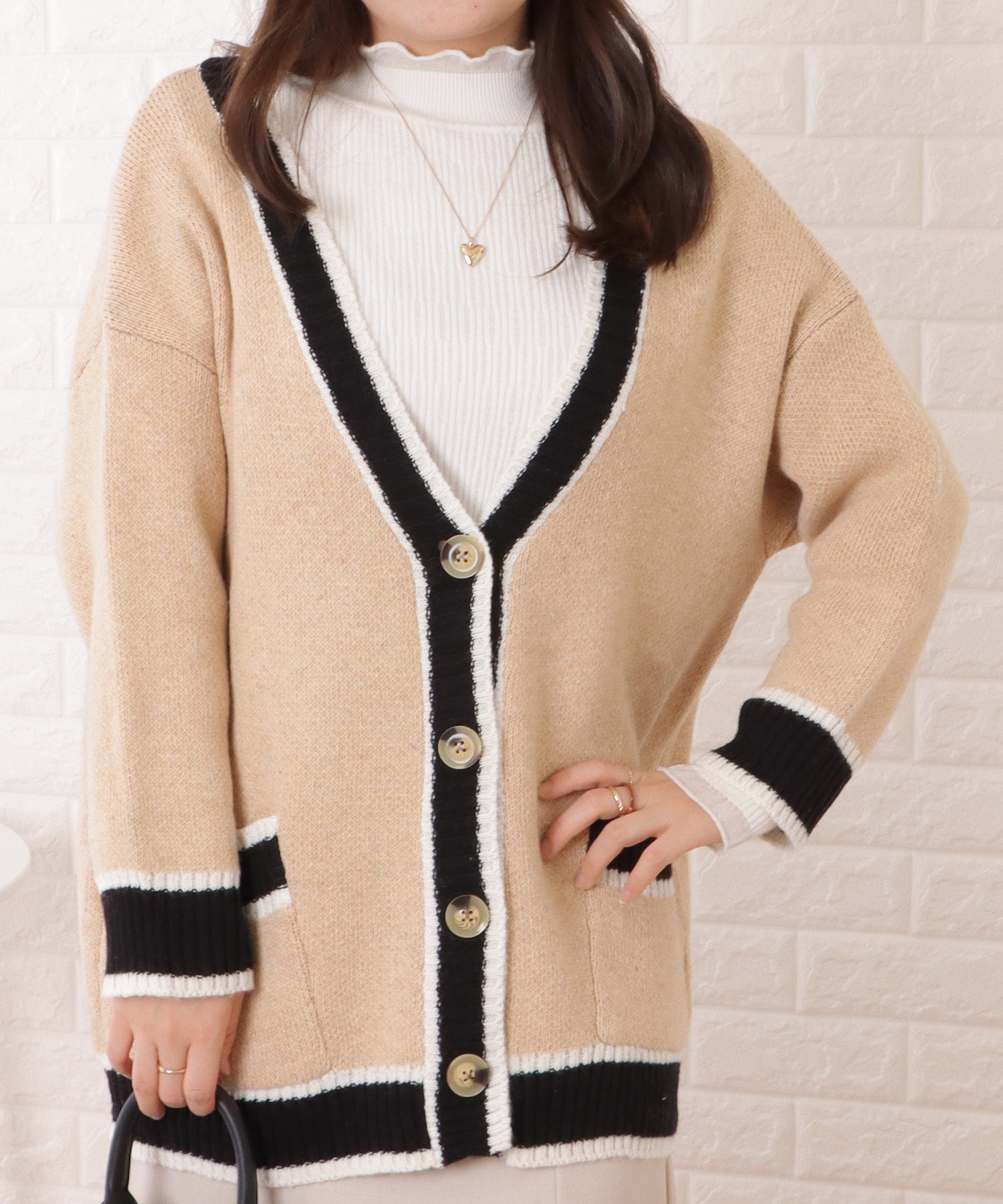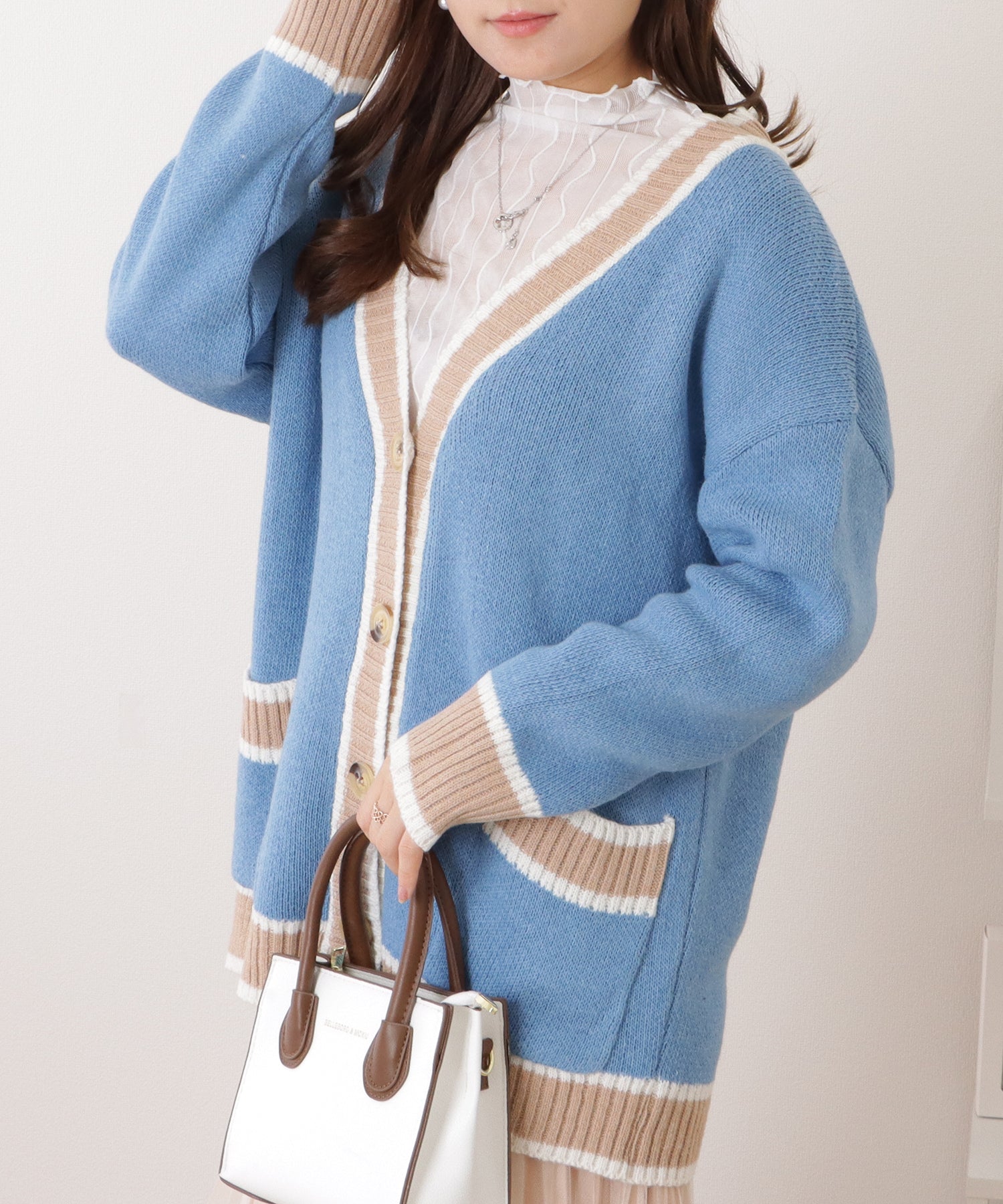 配色ラインゆるニットVネックカーディガン