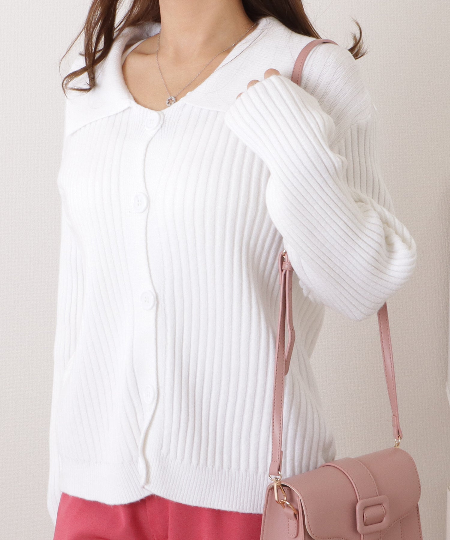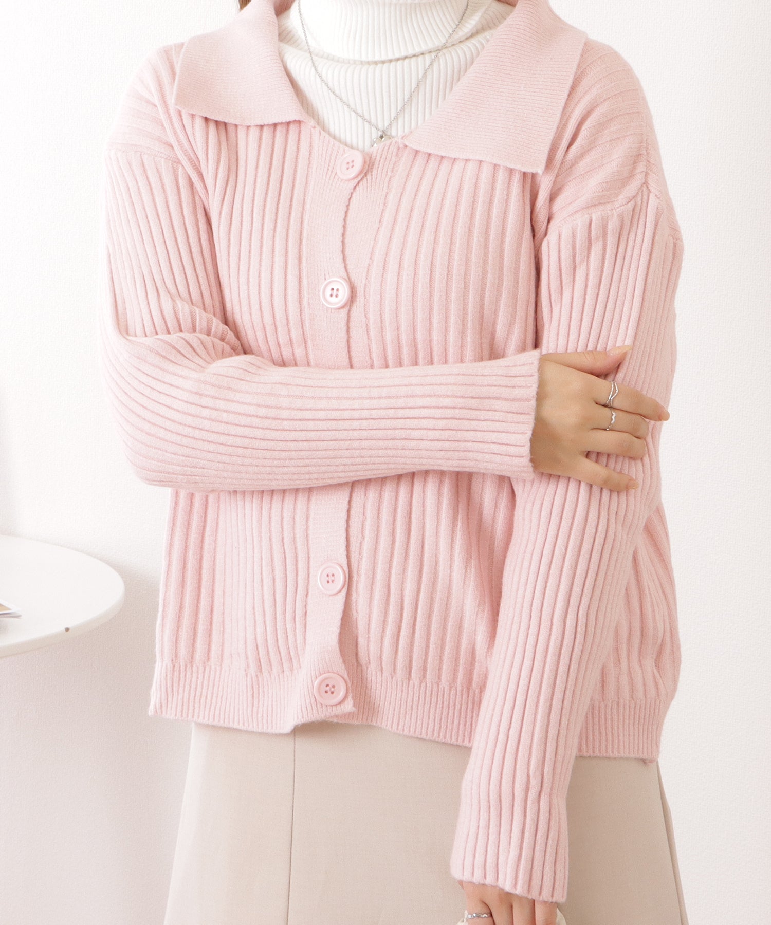 襟付きリブニットコンパクトカーディガン