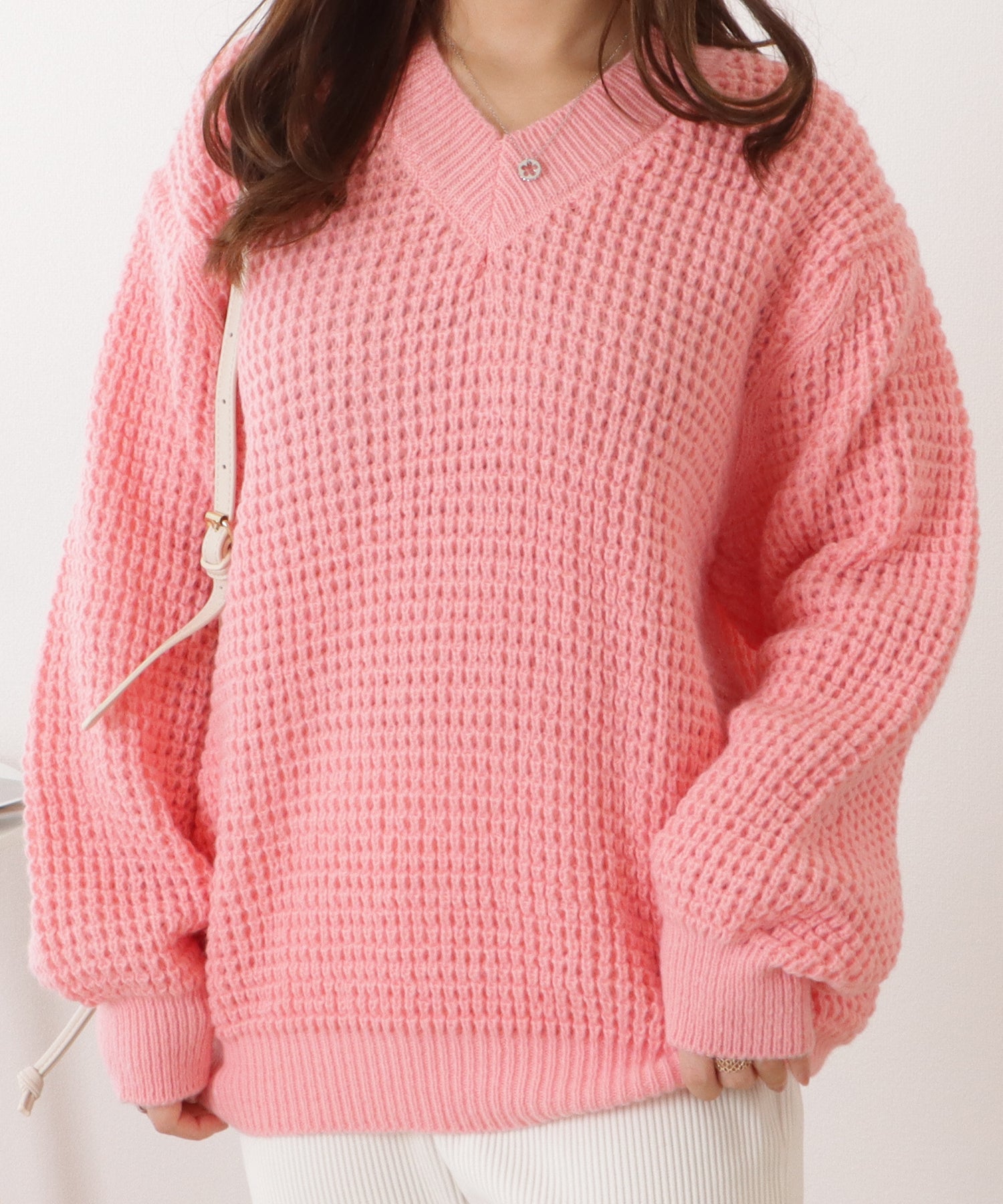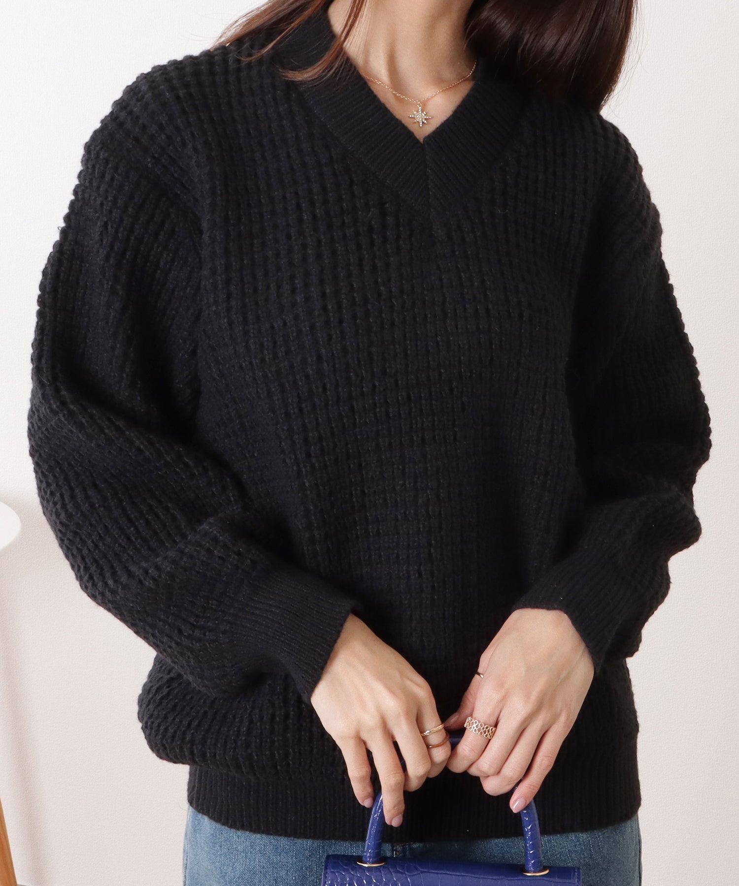 Vネックゆるニットローゲージプルオーバー