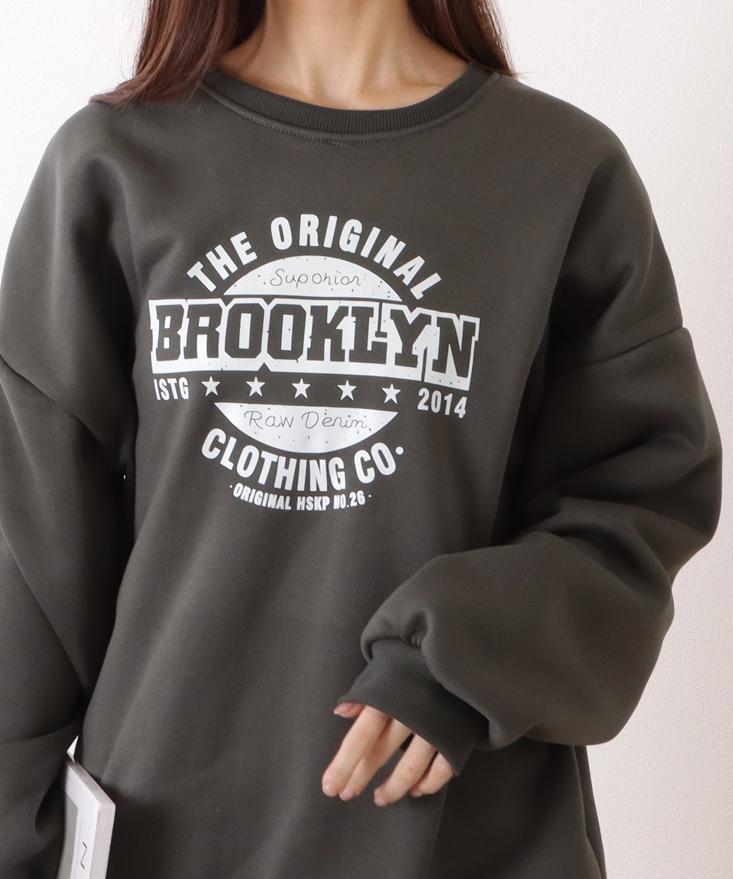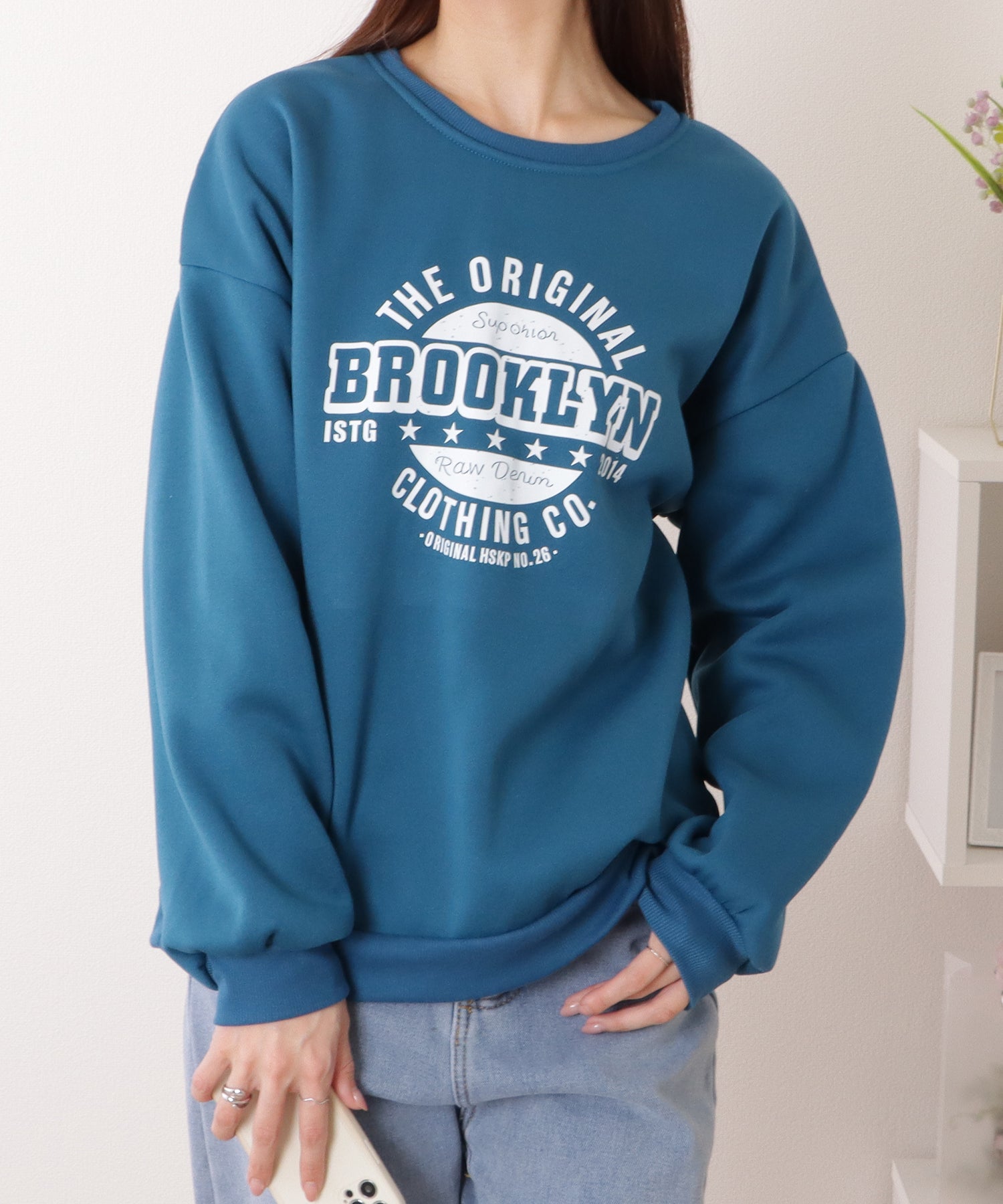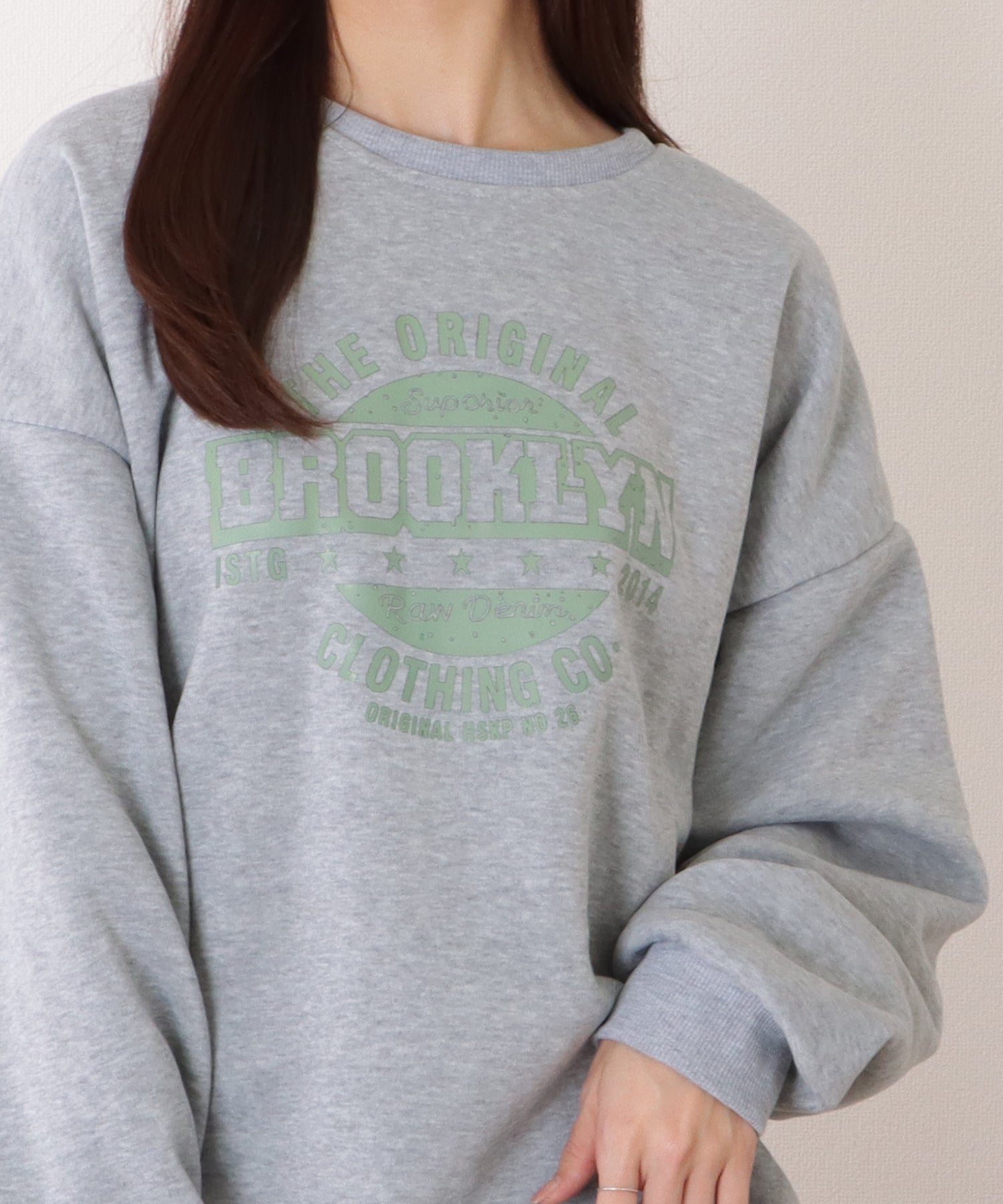 存在感のあるアメカジ風プリントが、カジュアルな装いに仕上げてくれる長袖プルオーバー。