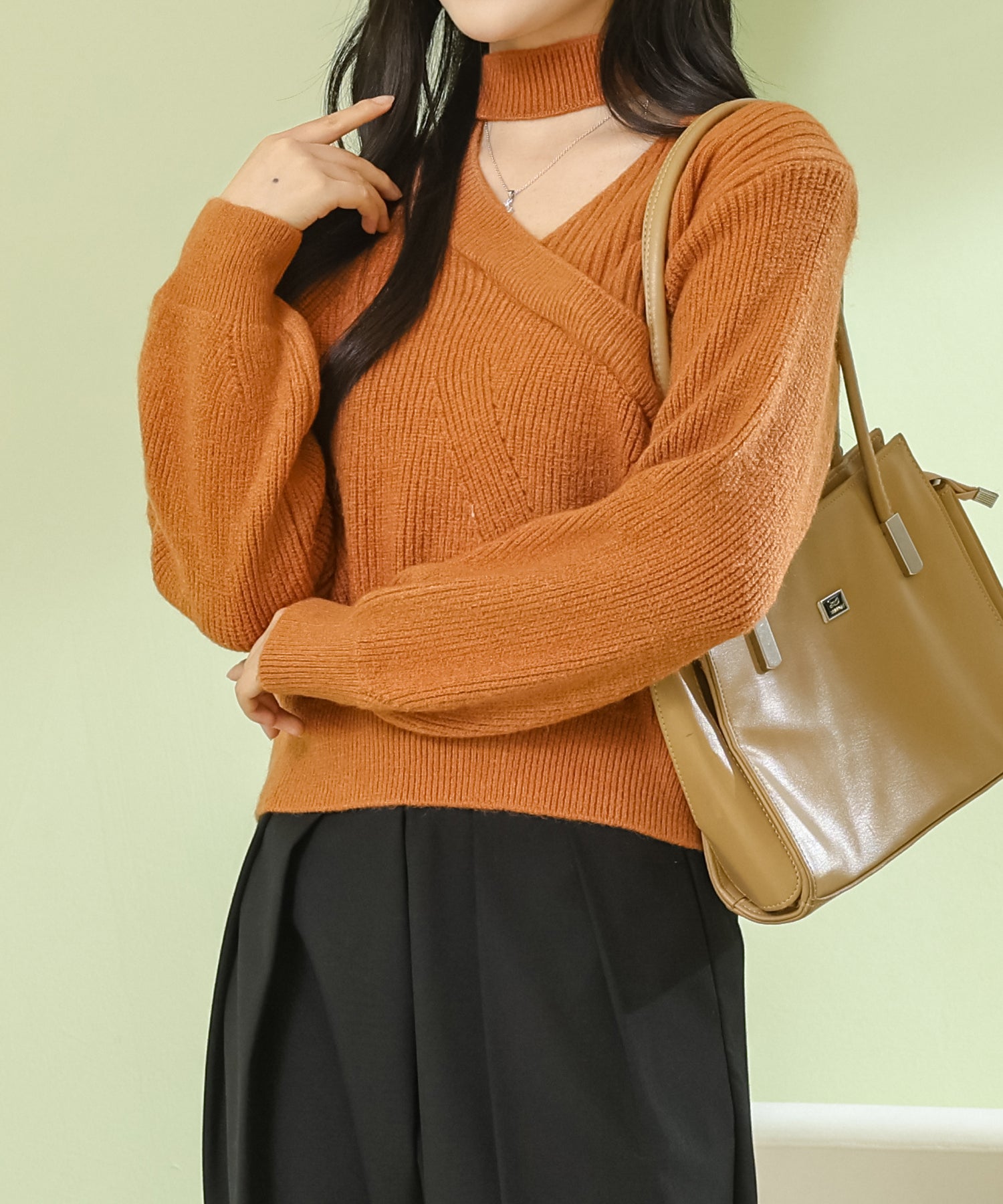 ネックラインから続くリブのデザインが、カシュクール風になっているのも魅力です。