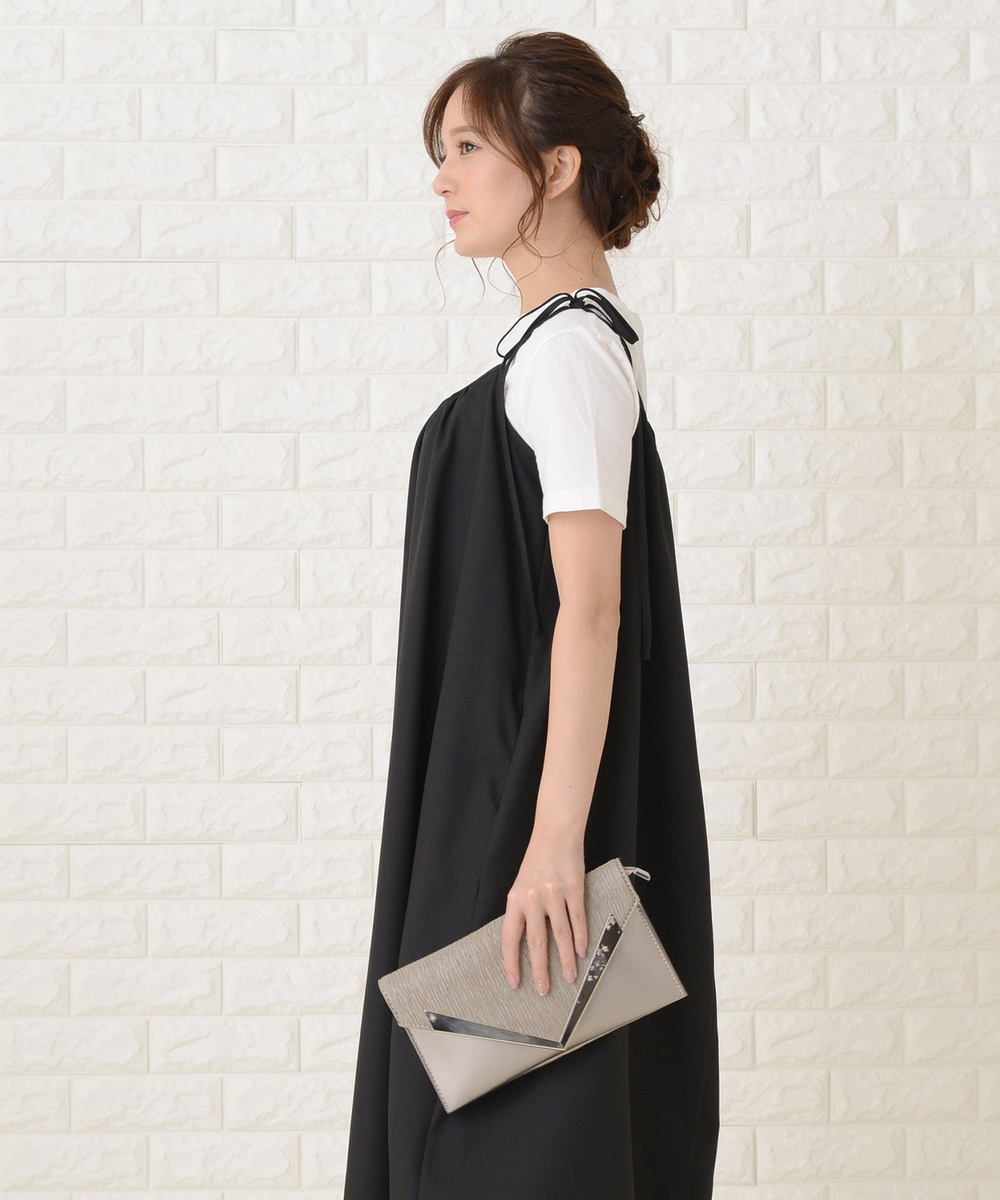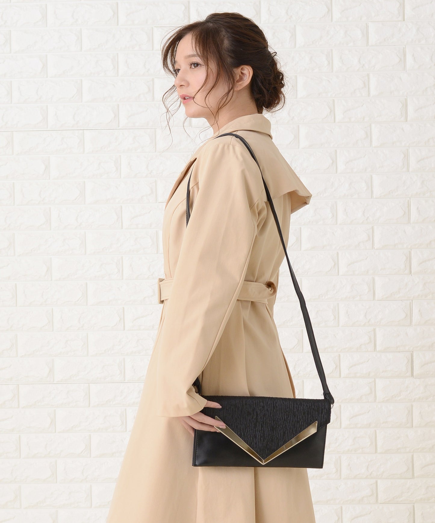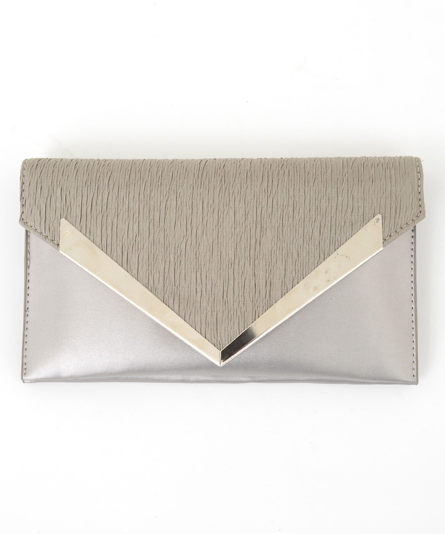 メタルモチーフで凛とした印象のフォーマルクラッチバッグ
