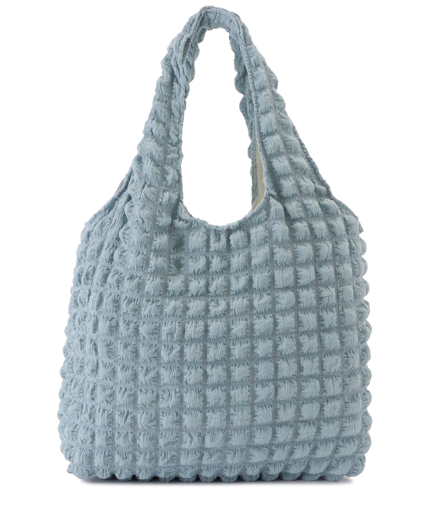 表情豊かな凹凸生地が、コーディネートのアクセントにもなるトートバッグ