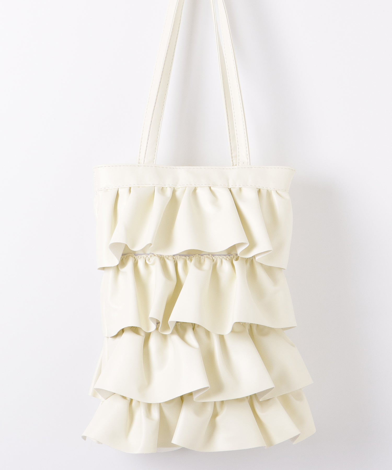存在感たっぷりのティアードフリルが、装いに可愛らしさを演出するトートバッグ。