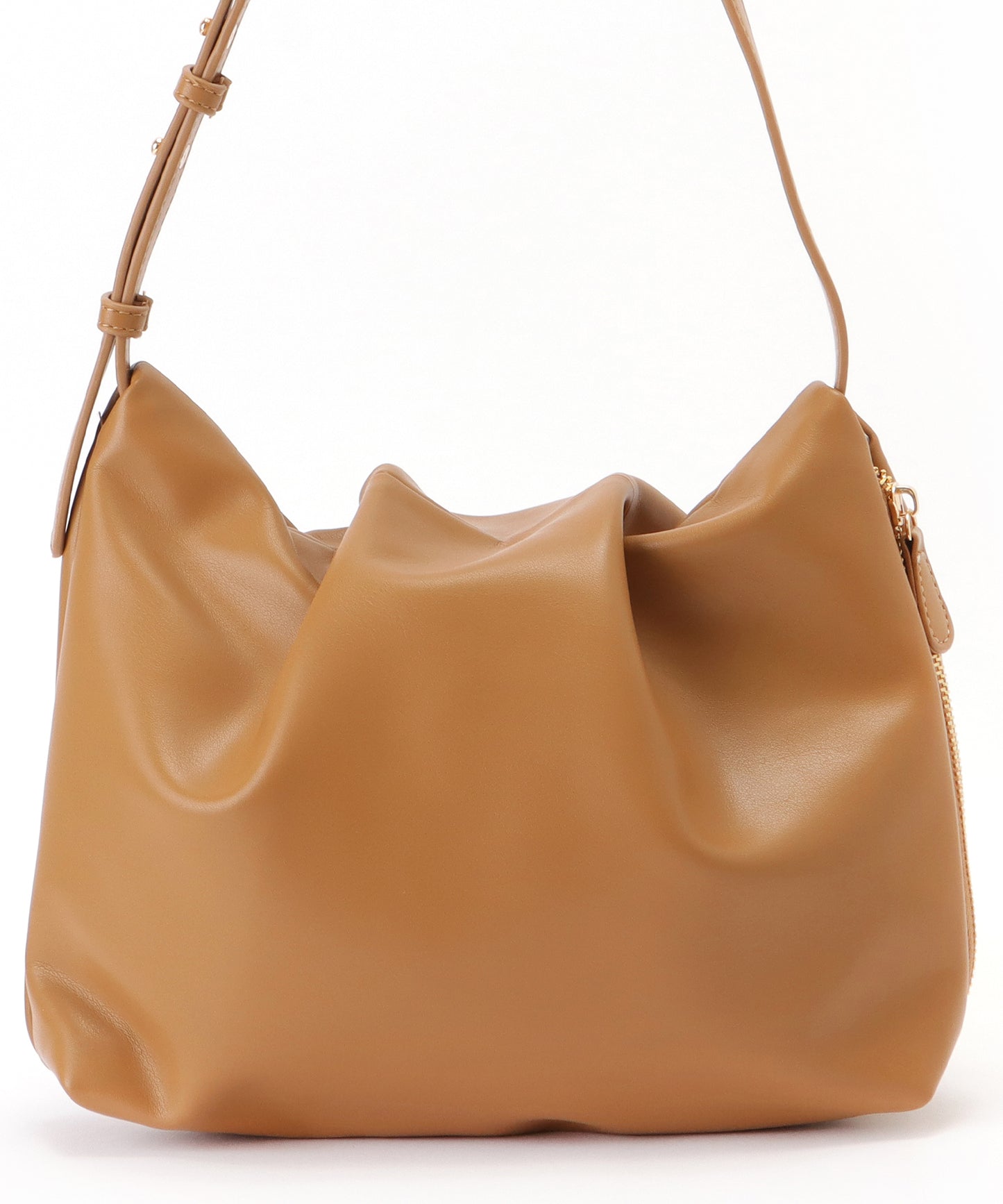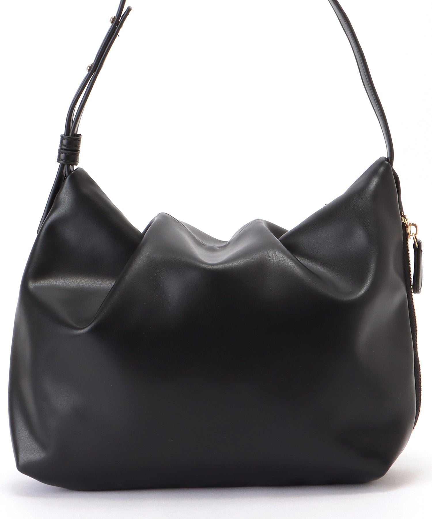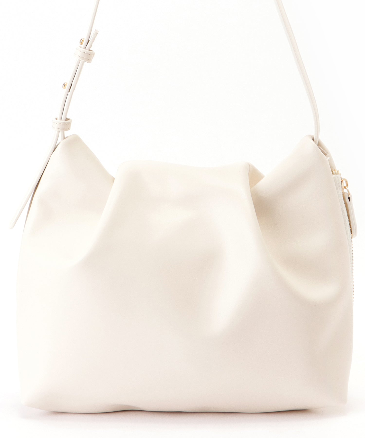 ギャザーのようなくしゅっと立体的なシルエットとは対照的に、華奢なワンハンドルストラップですっきりとした印象に仕上げました。