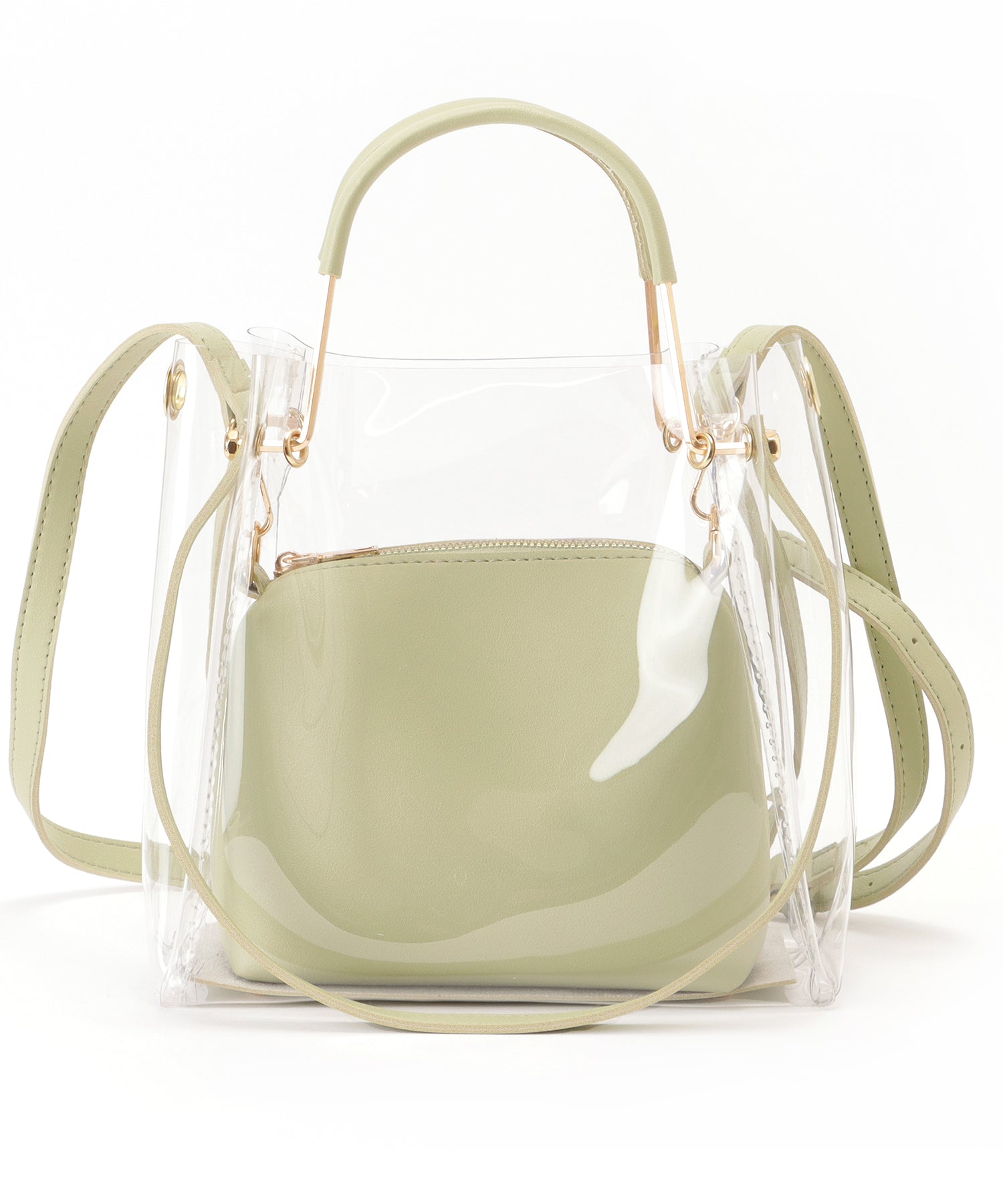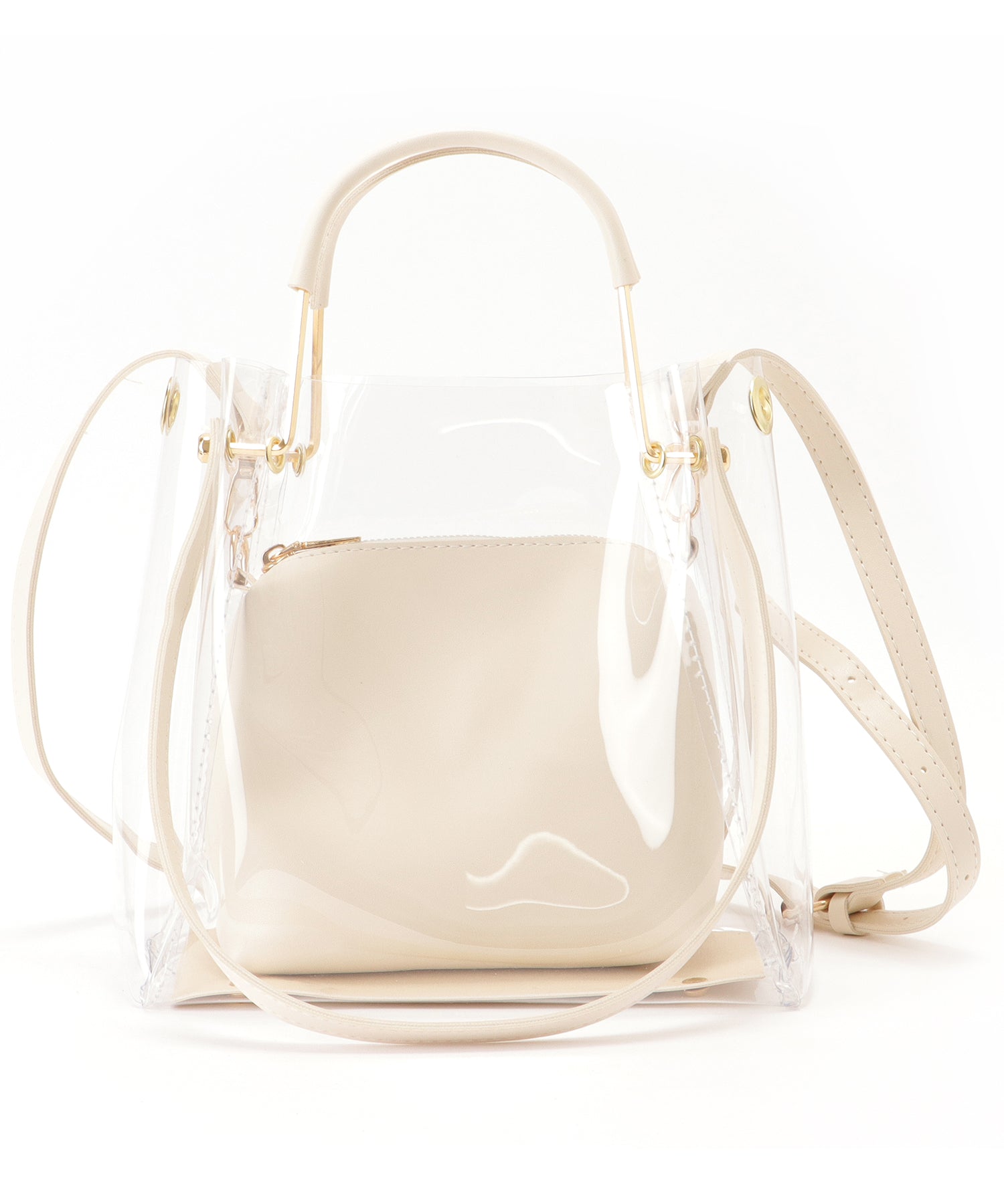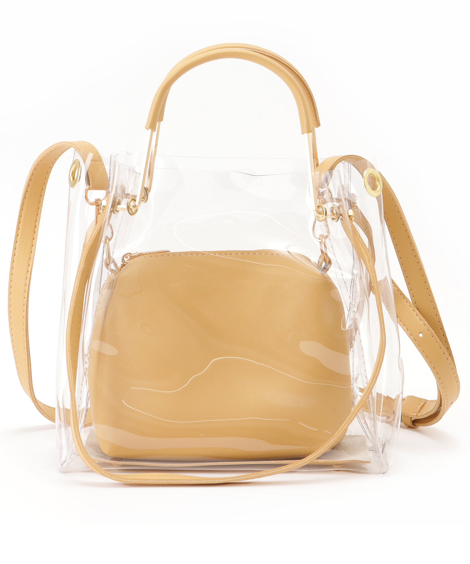 2WAY レザー調 スクエア ショルダー ハンド クリア バッグ セット