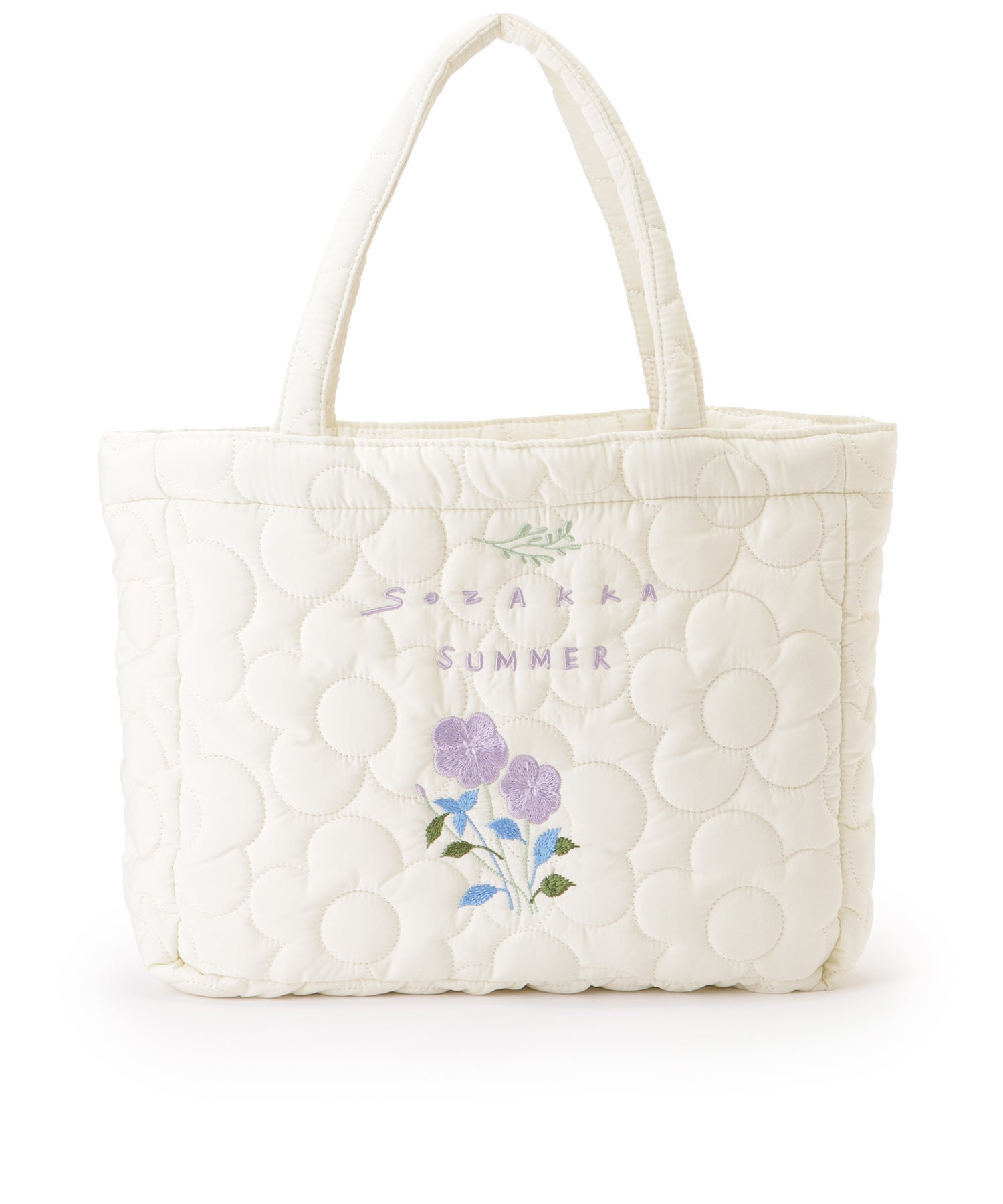 ボタニカル刺繍 フラワー ステッチ ソフト トートバッグ
