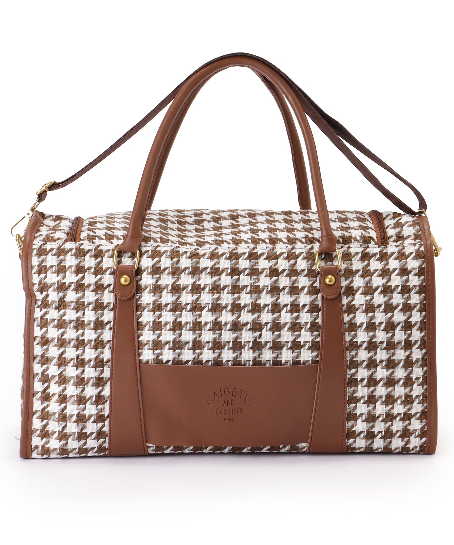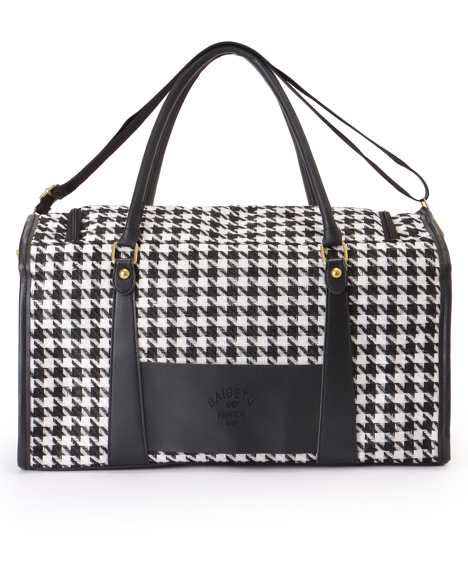クラシカルな千鳥格子柄が目を引く、ボストンバッグ。