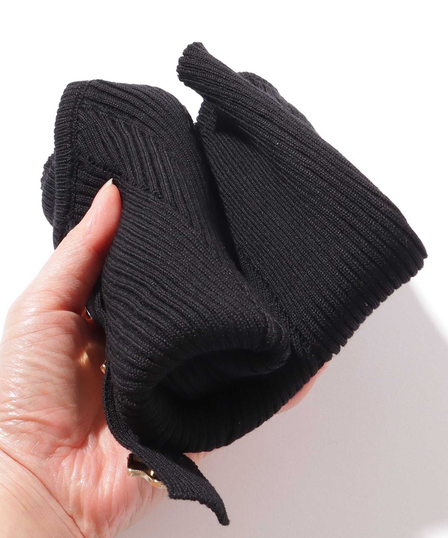 ニットのソフトな生地感とのアンバランスさが、鮮度の高いレディ感を演出します。