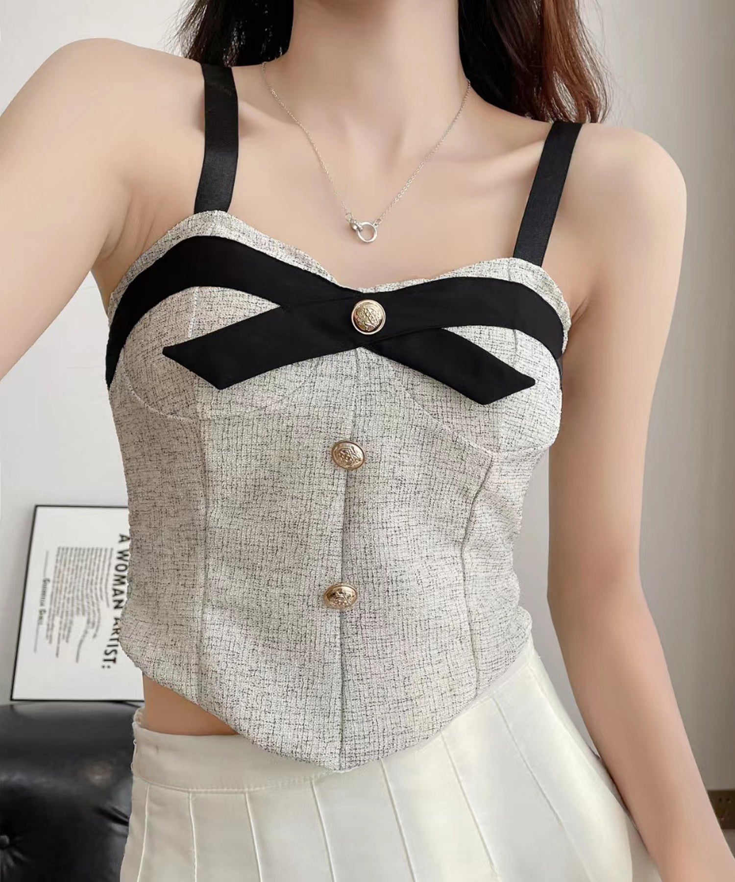 クロステープ ボタン付き ツイード カップ付き ビスチェ