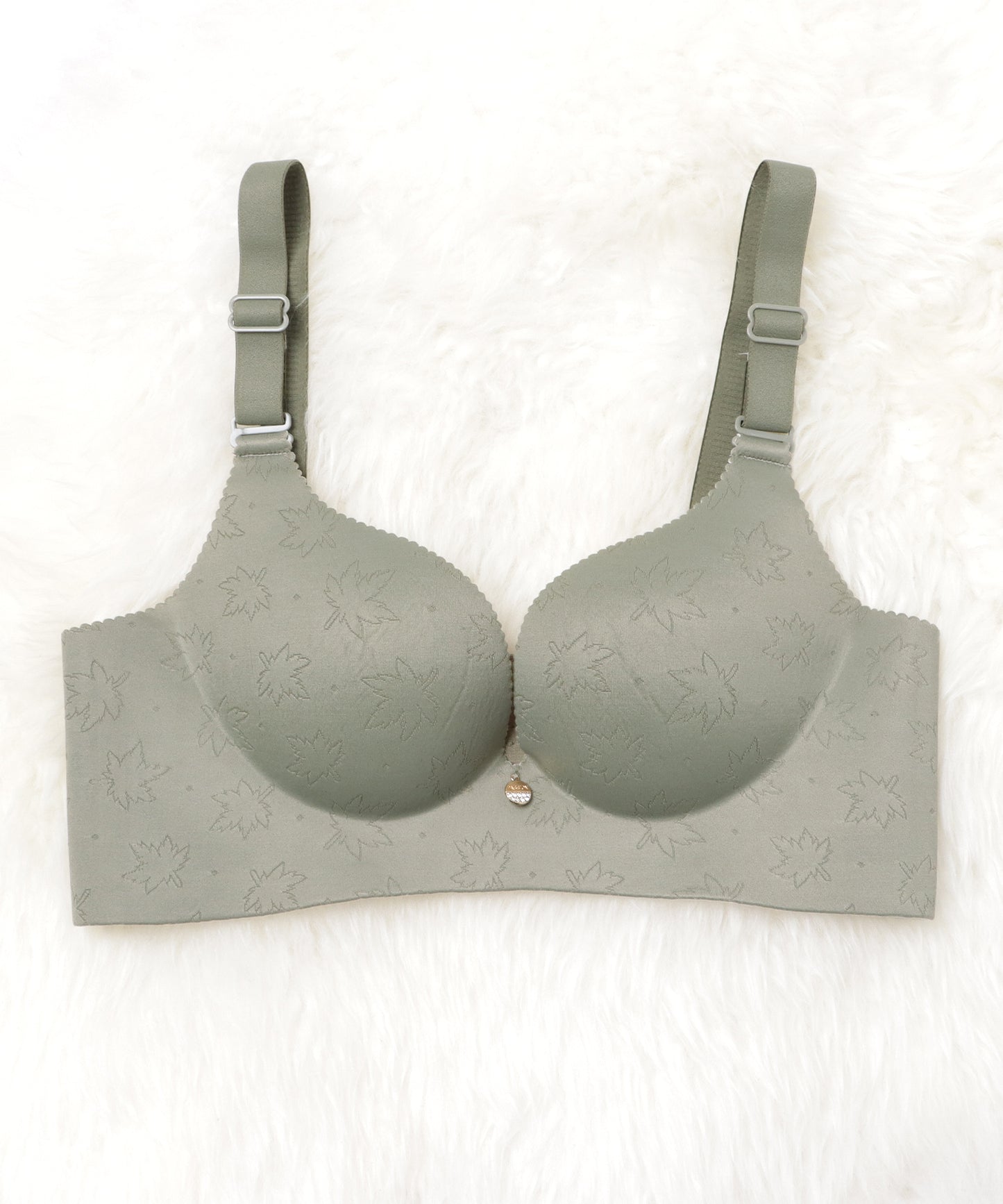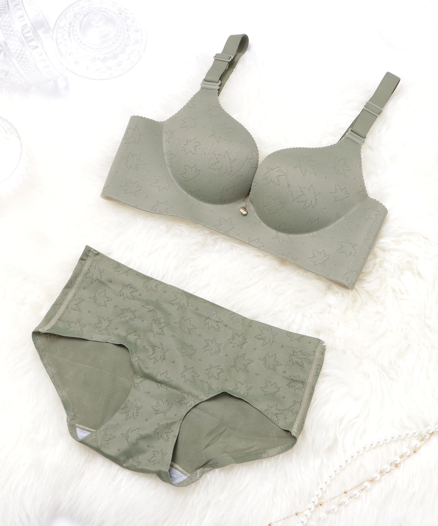 リーフ柄デザインの脇高モールドブラ&ショーツセット。