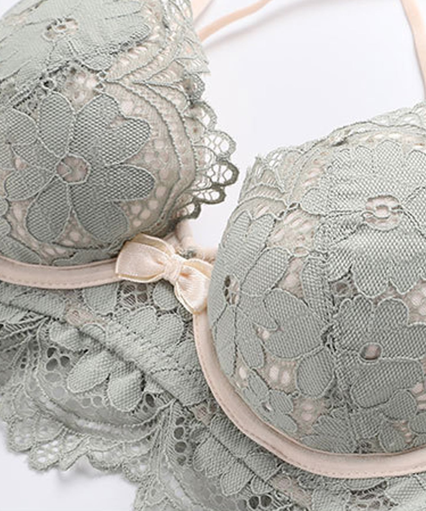 たっぷりレースが可愛らしい、谷間メイク ブラ&ショーツの2点セット