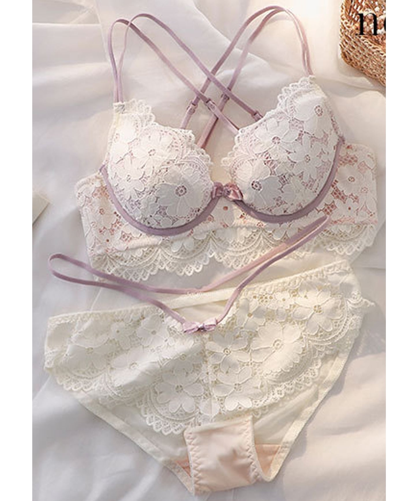 谷間メイク 花柄レースブラ&ショーツ 2点セット