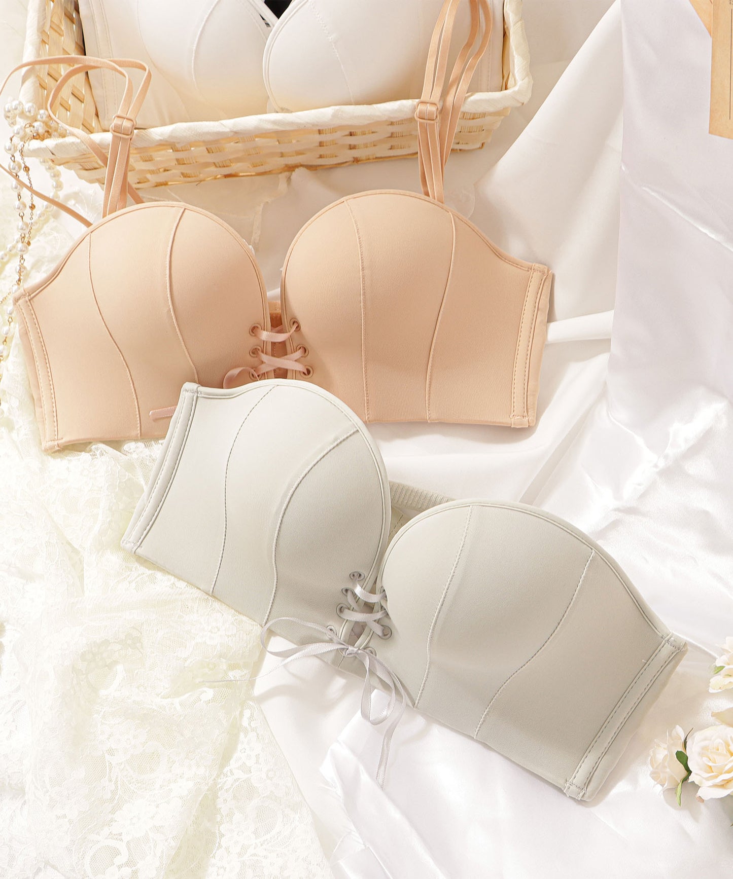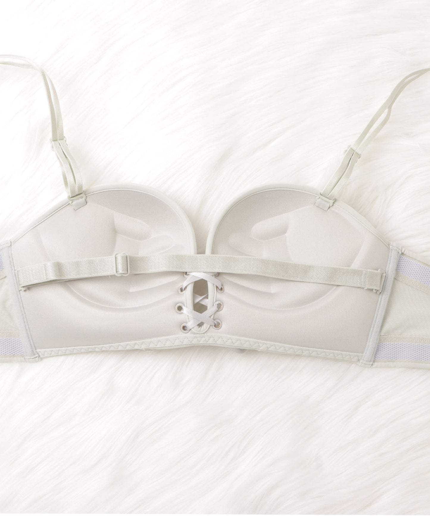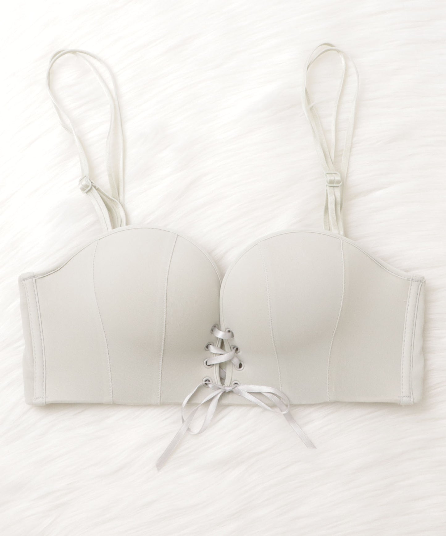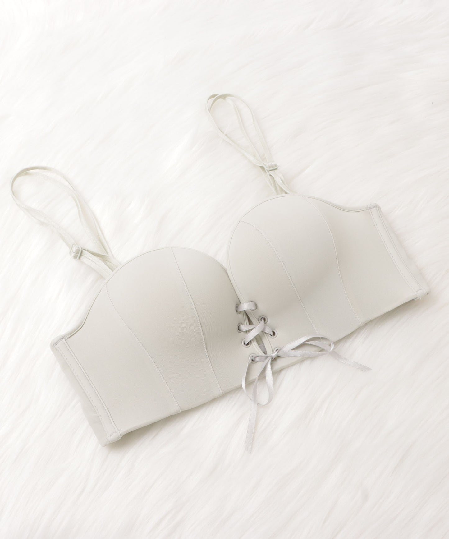 厚めの手のひら型パッドがバストを持ち上げ、レースアップをきゅっと絞ればきれいな谷間を作れます。