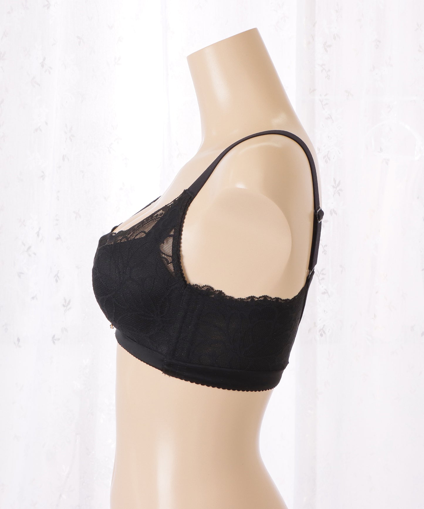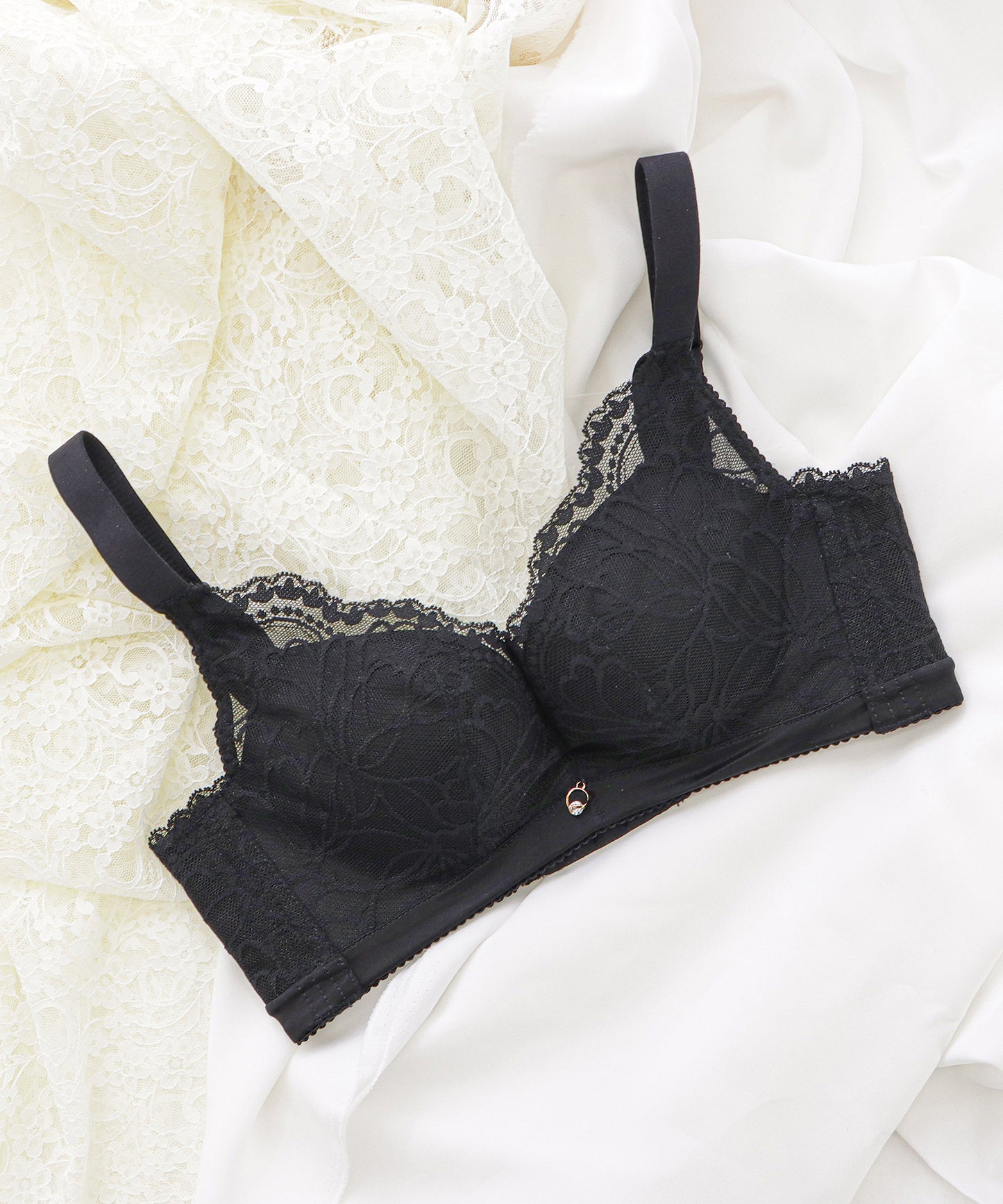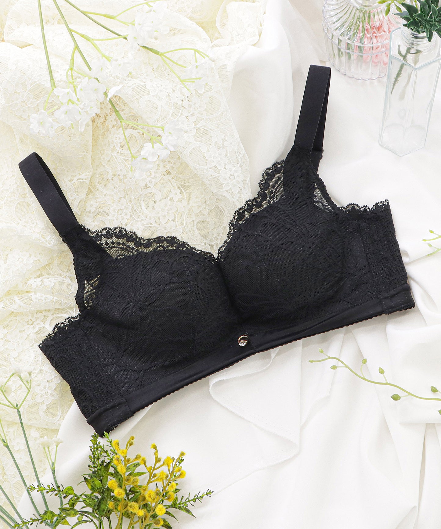 大振りの花柄レースがフェミニンな3/4カップブラジャー。