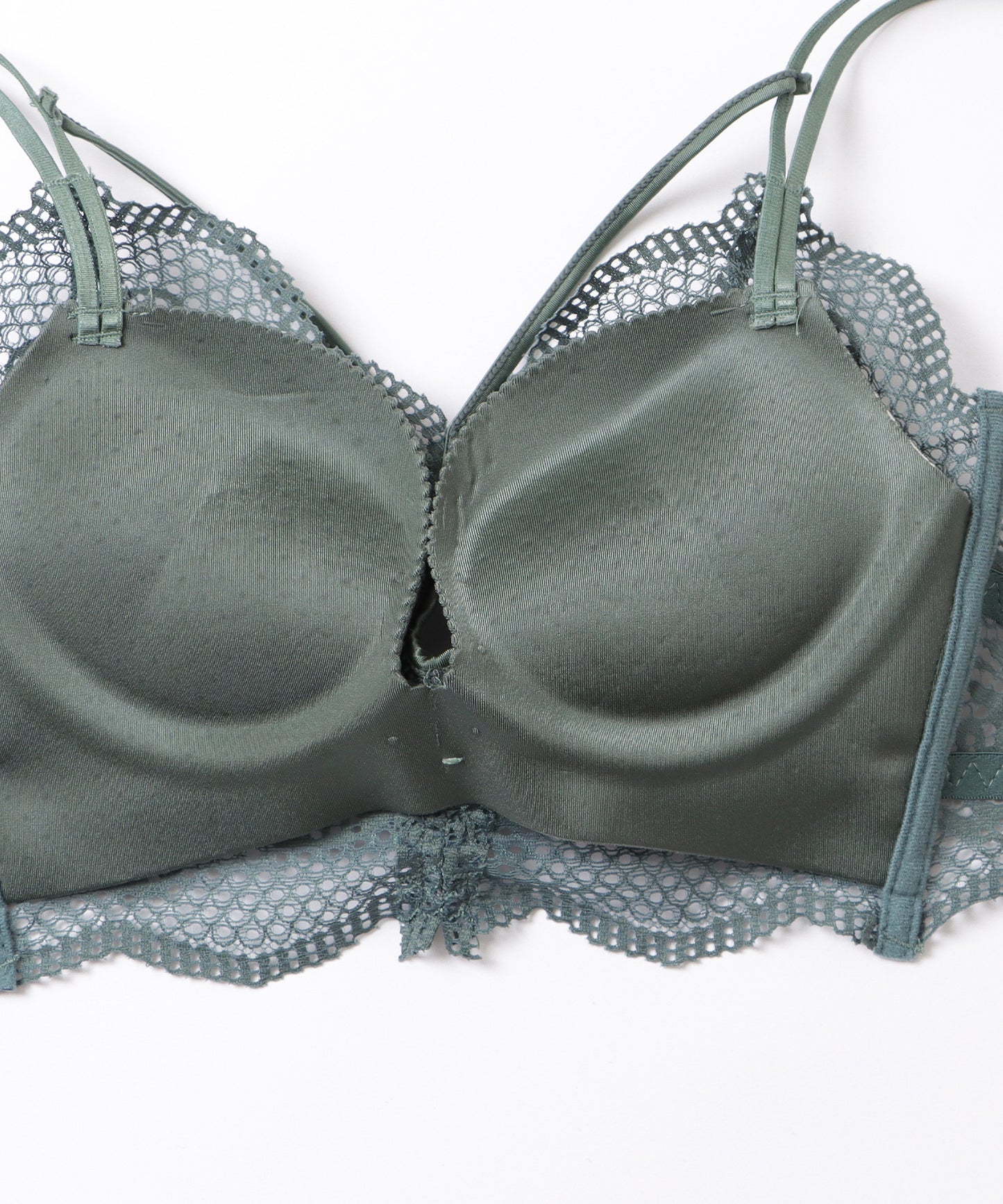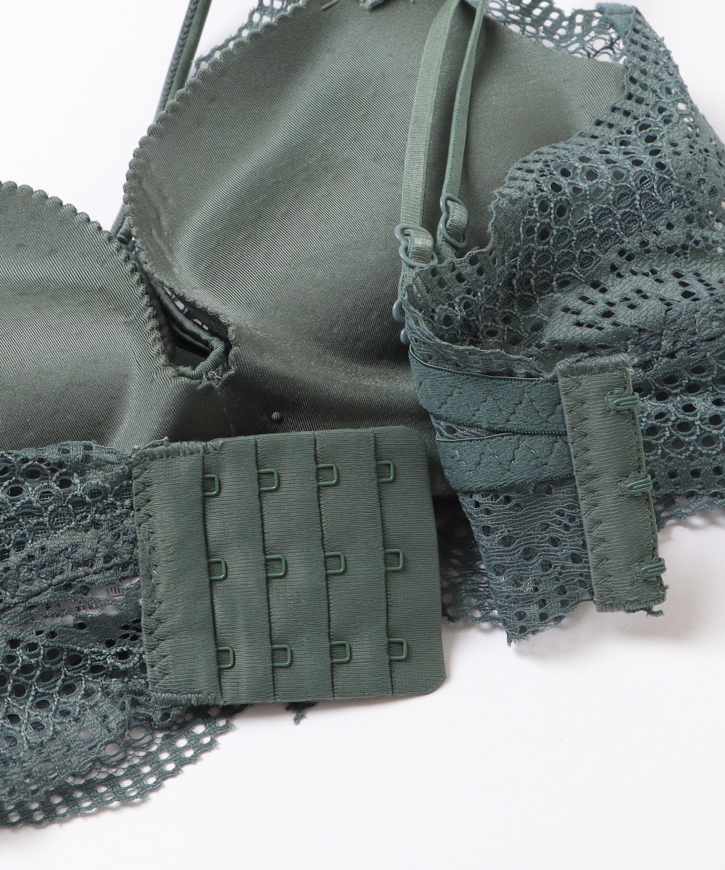 バスト全体をすっぽりと包み込む安心感のあるカップは、両脇からお肉をグッと寄せる3/4タイプを採用。