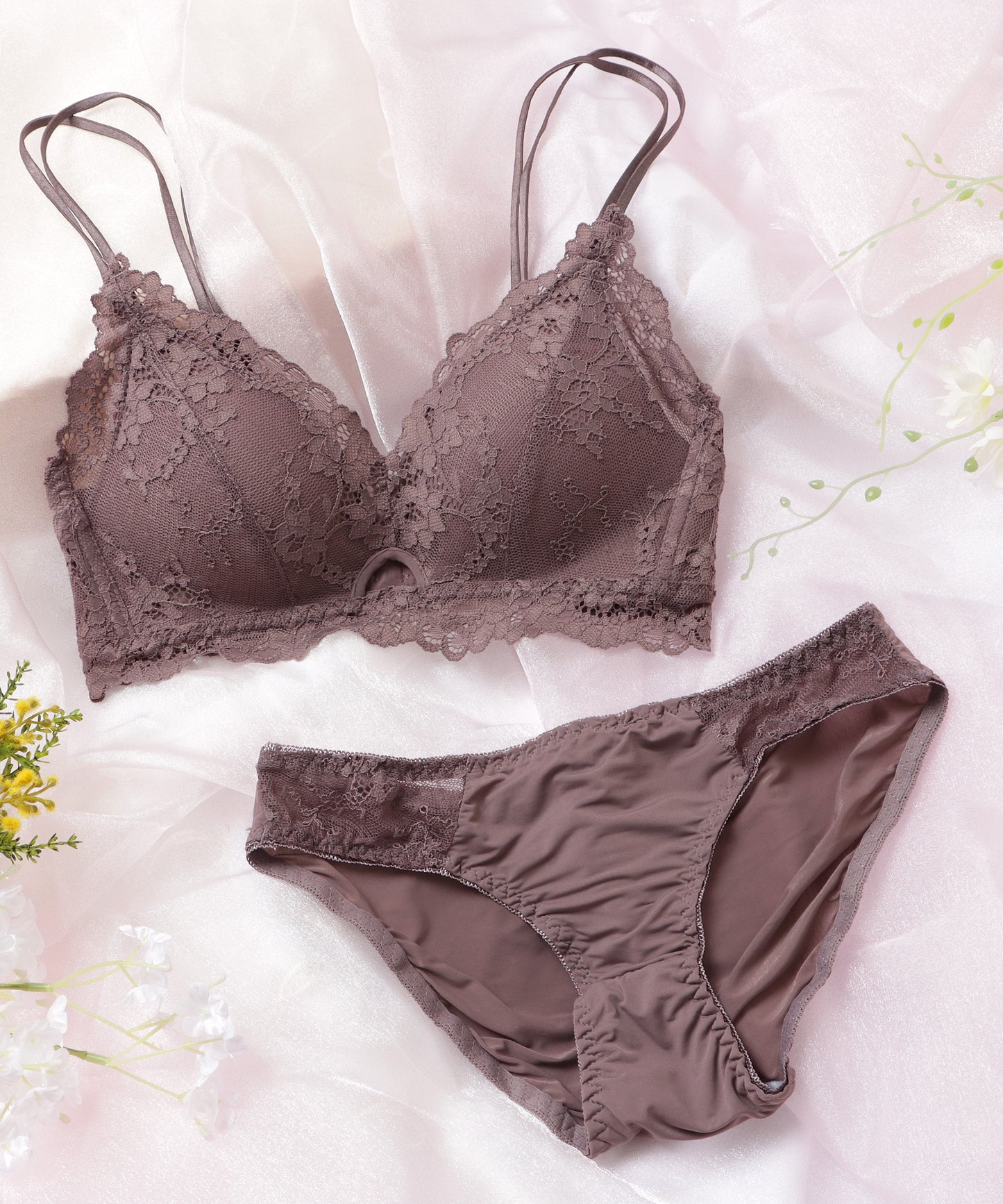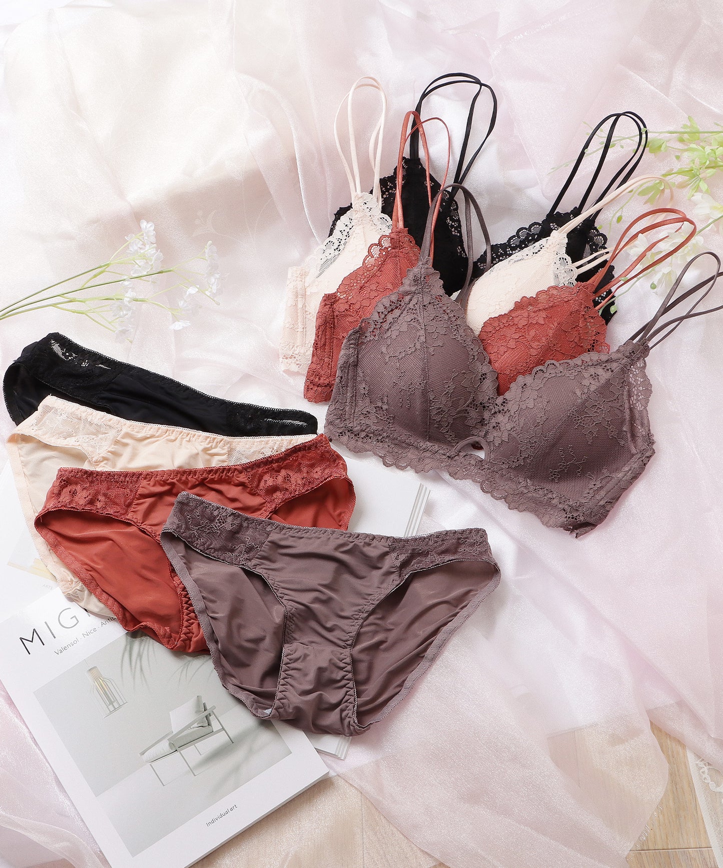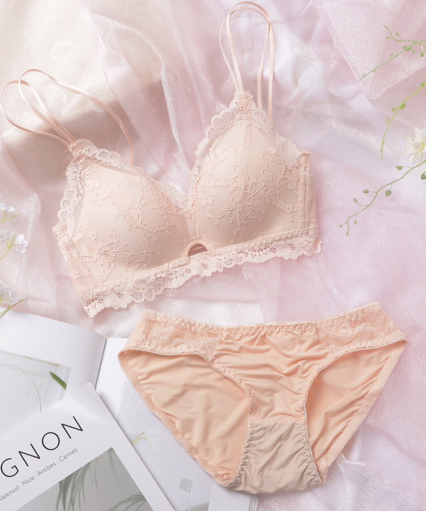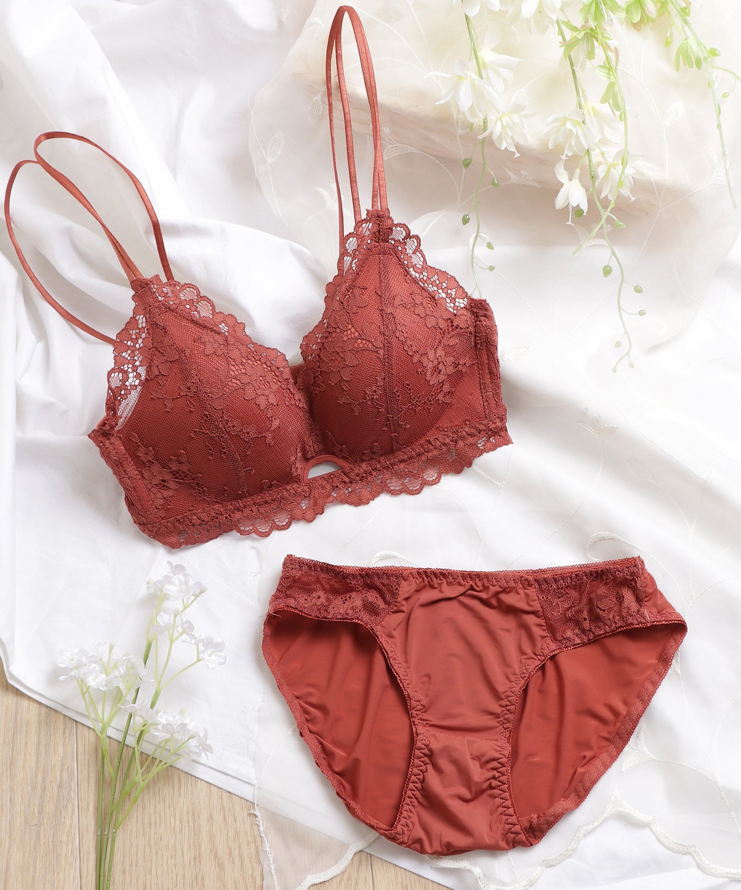 クロスバックストラップレーシィノンワイヤーブラ&ショーツセット