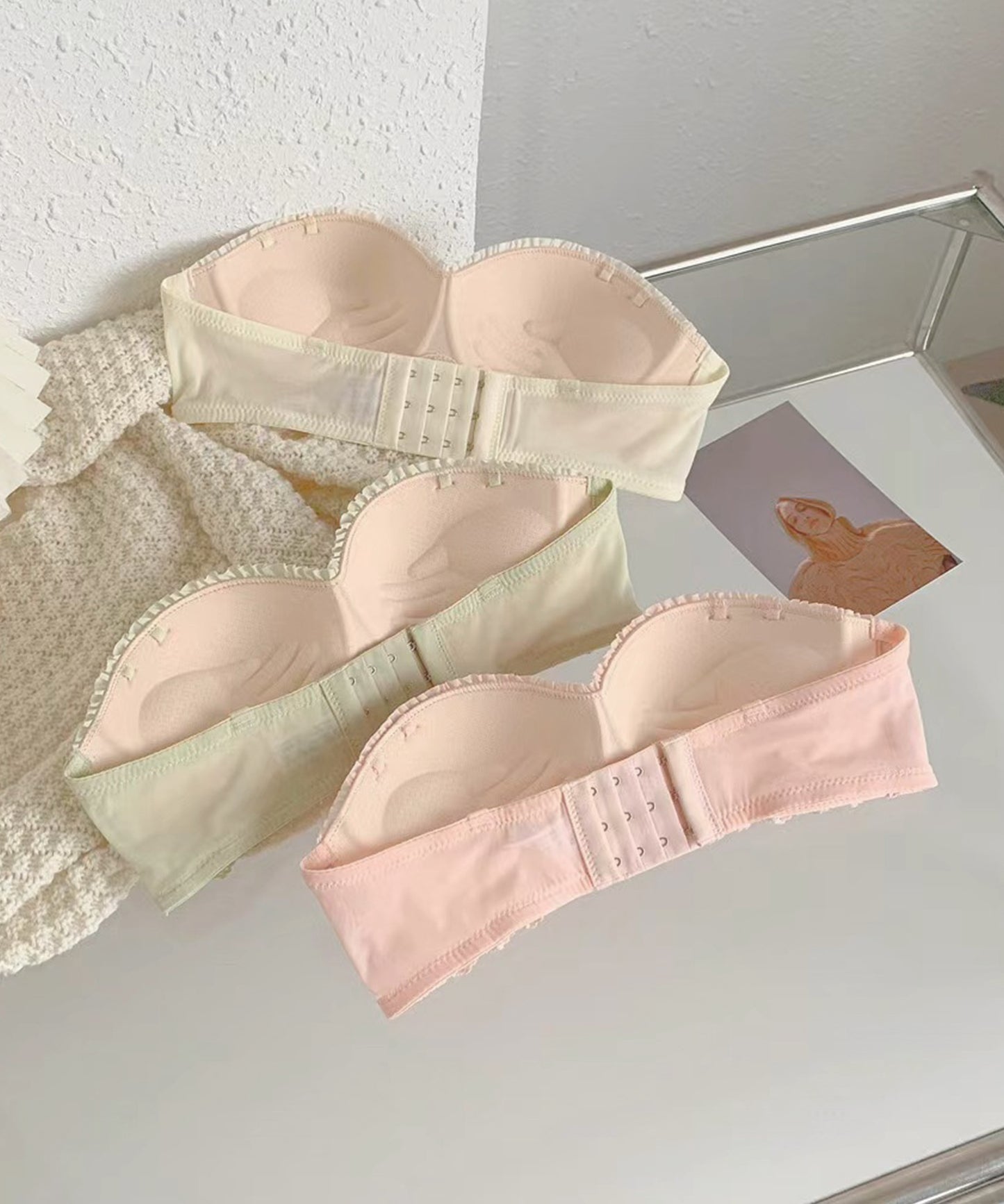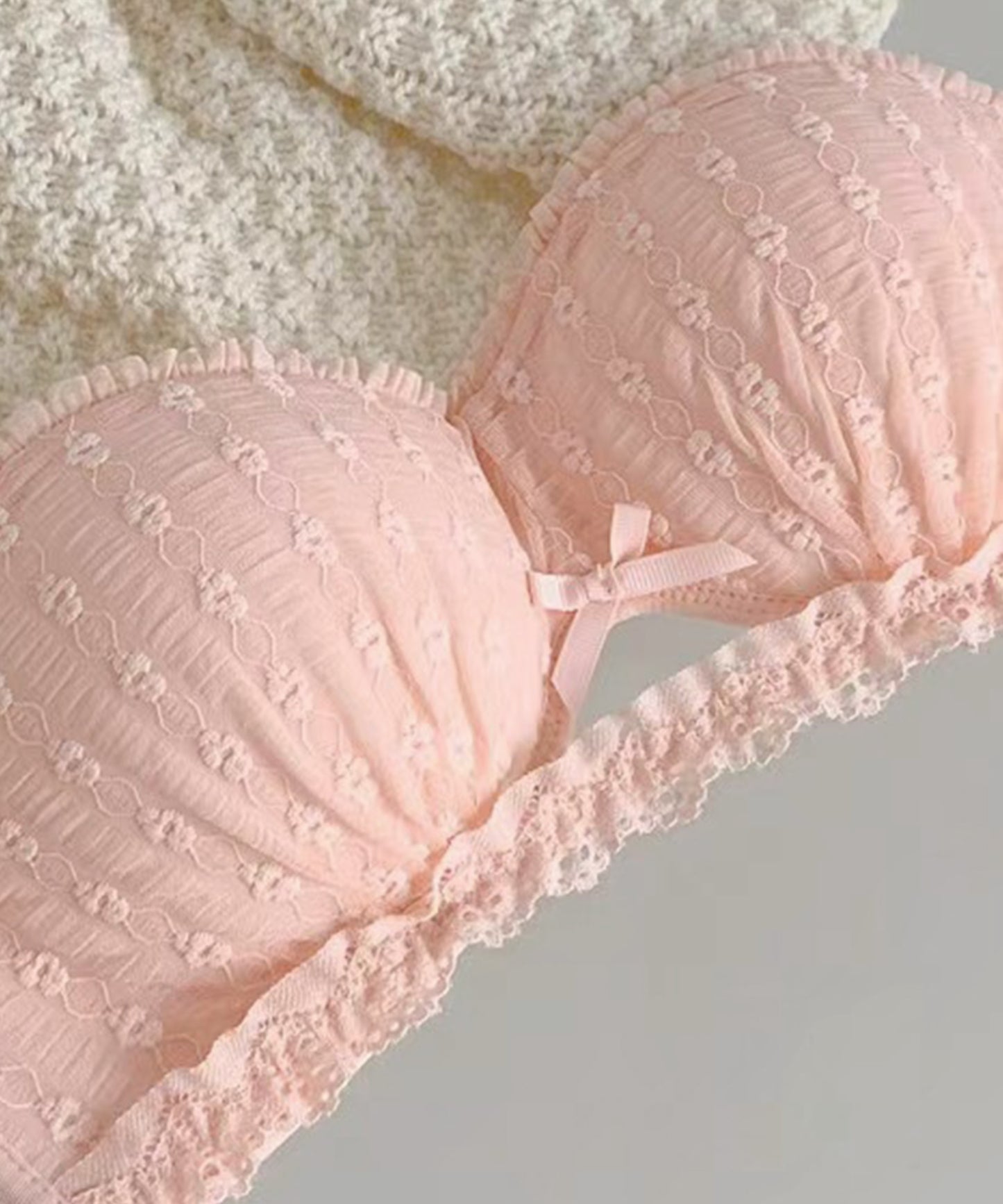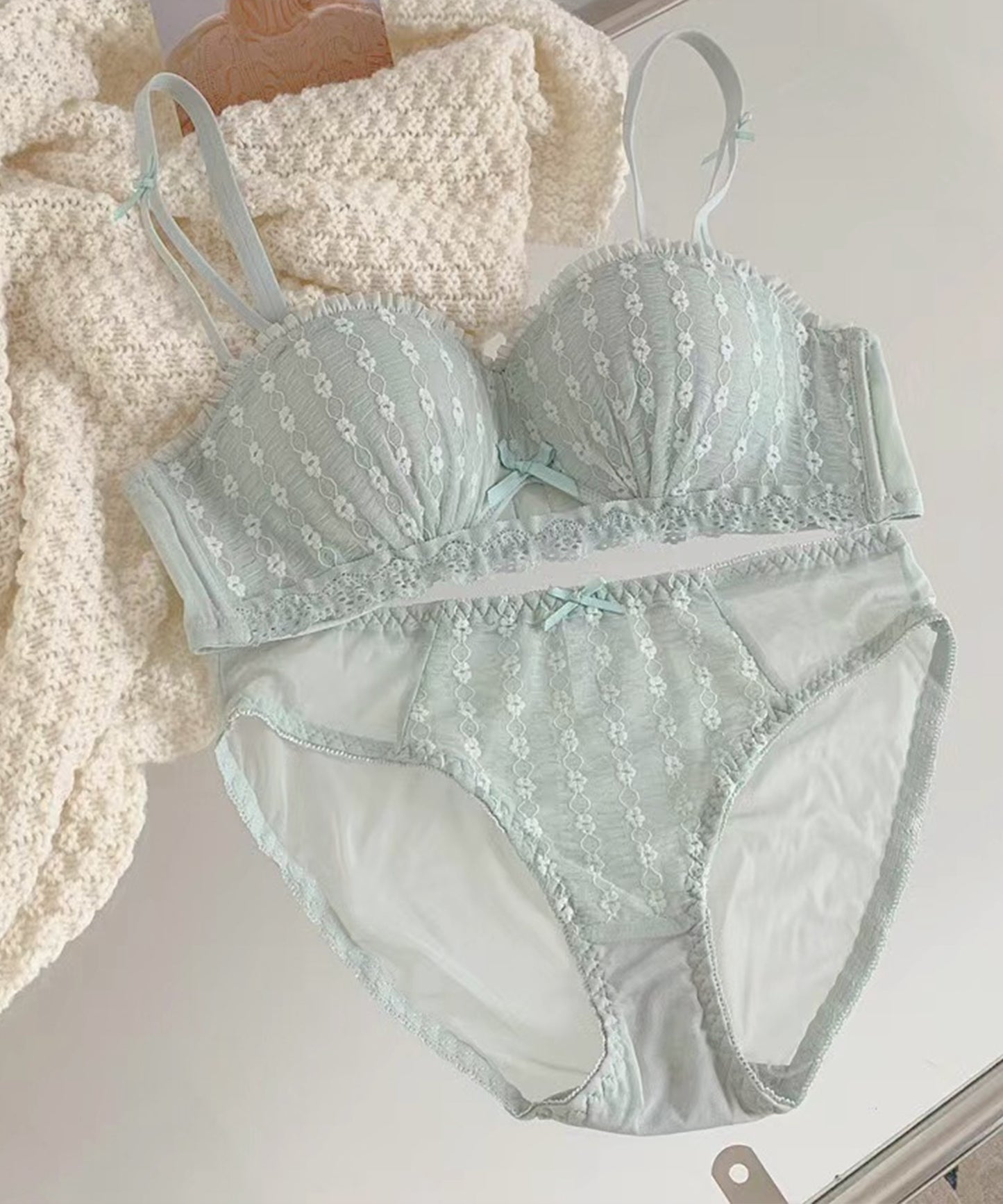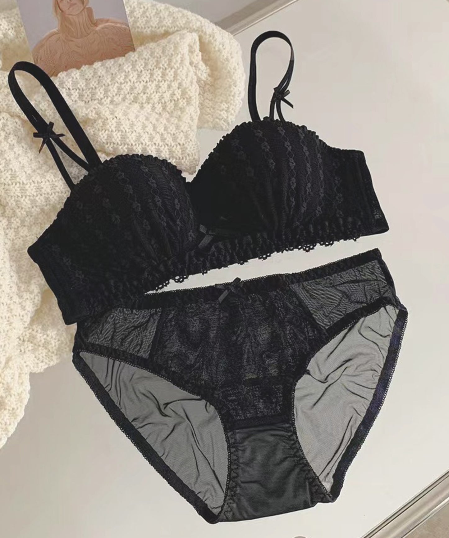 控えめながらもレースやカットレースで甘さを出したルックスが魅力的。