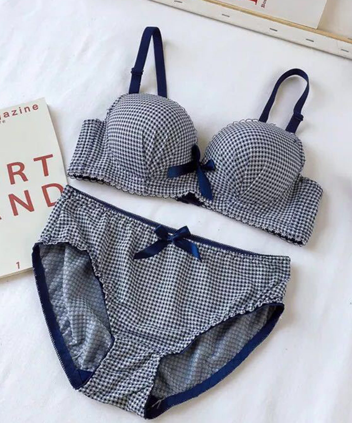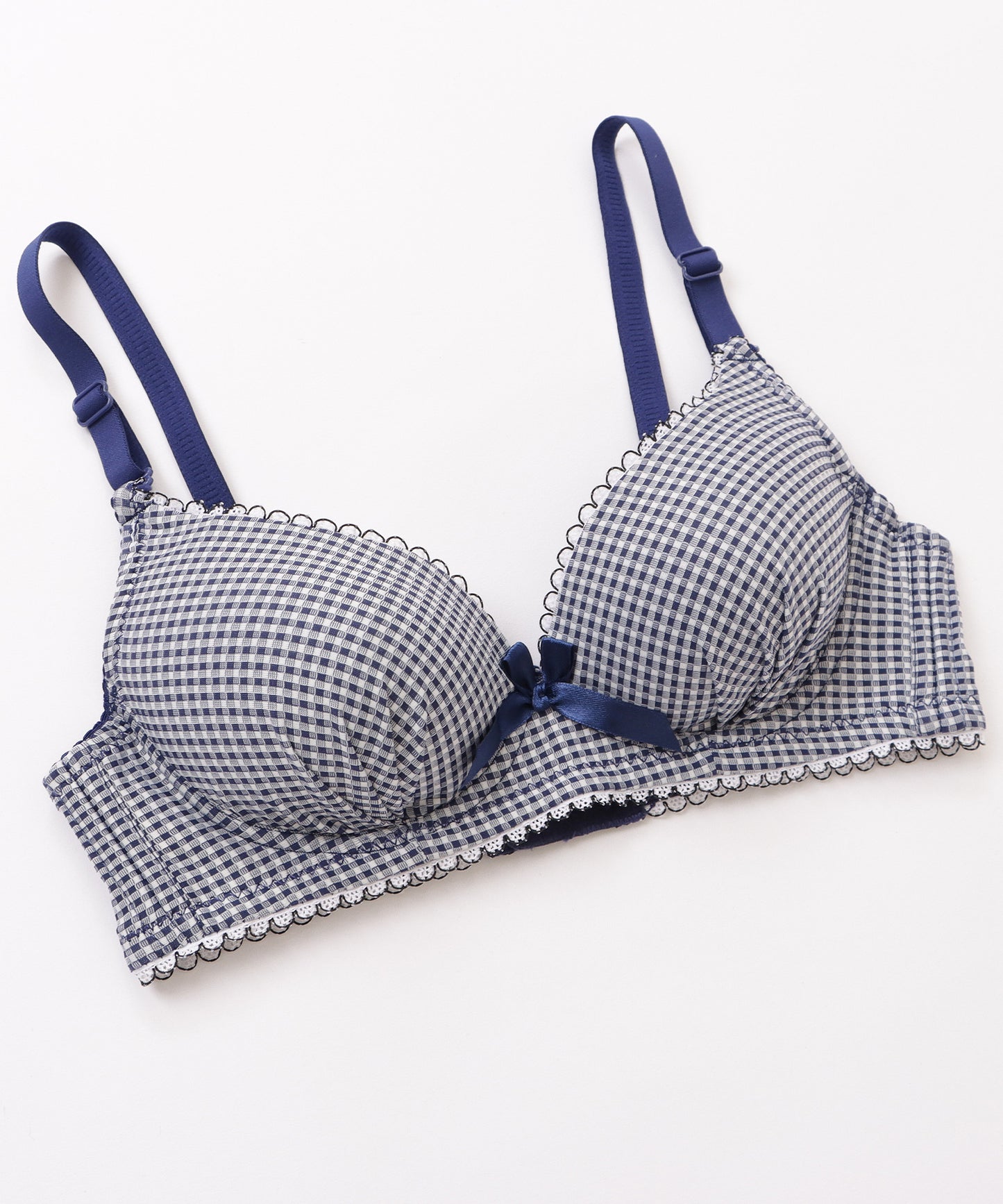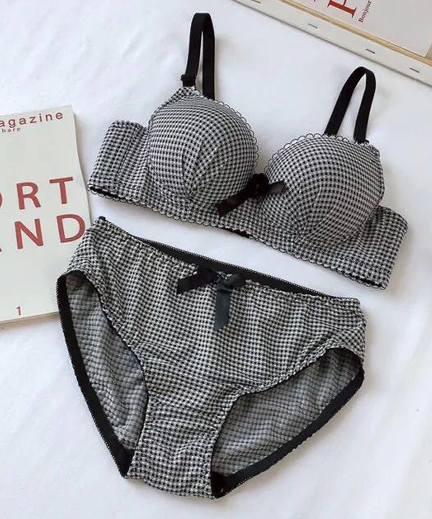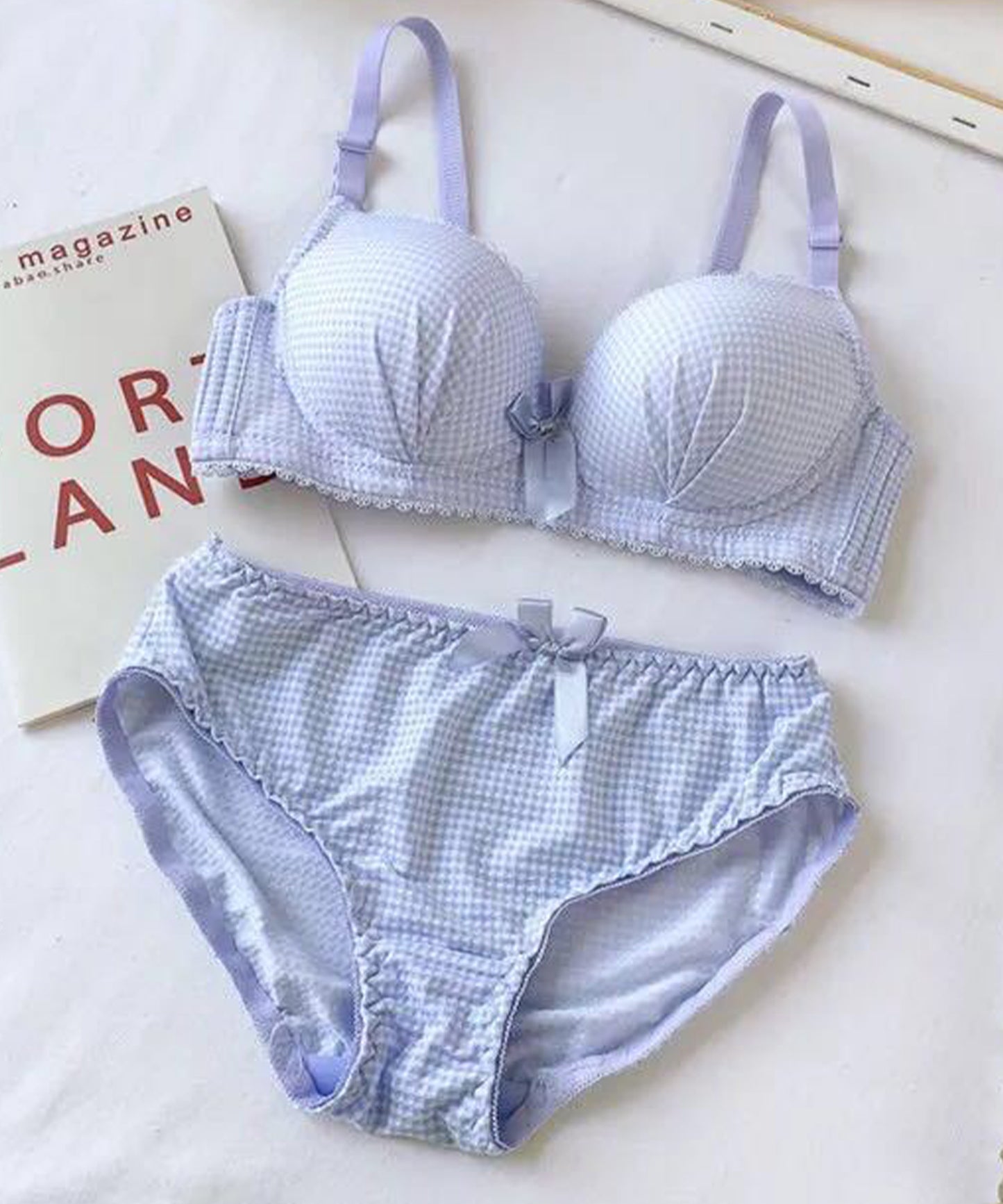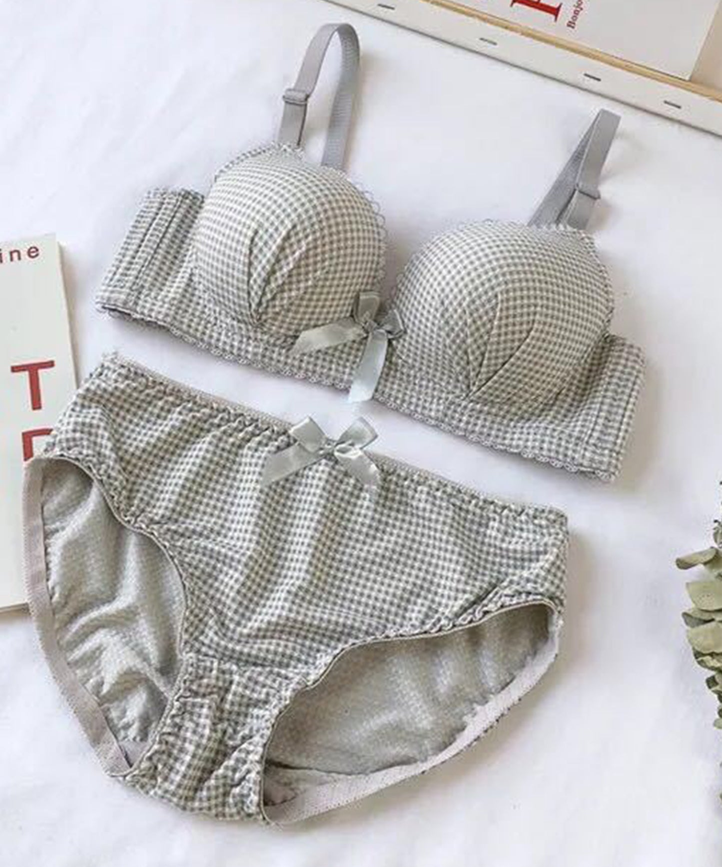 ギンガムチェック柄ノンワイヤー3/4カップブラ&ショーツセット